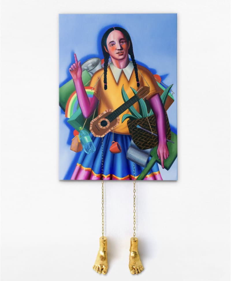 En el cuadro de Vivanco, la Ekeka posee además otros objetos, como un megáfono y un objeto con forma de arco iris. Es decir, equipamiento básico de los movimientos activistas para las manifestaciones. Y por lo tanto dan testimonio del deseo de romper o invertir las relaciones de poder existentes. Quizás este diosecillo masculino se ha convertido en una diosa que seguro será más propensa a conceder deseos a las mujeres que a los hombres.