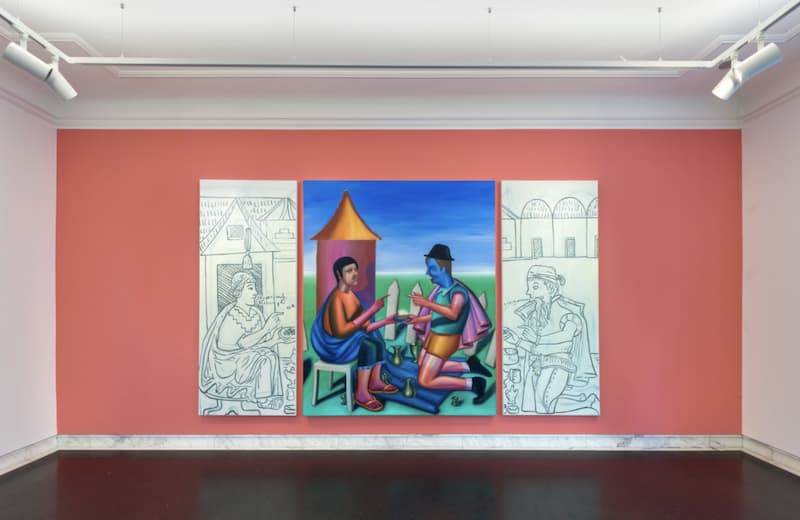 En esta muestra, a través de una serie de oleos de colores brillantes, visualmente atractivos pero incómodos, Ivana de Vivanco (1989, Lisboa) invierte los personajes tradicionales masculinos como el ekeko y despoja al Santiago de su poder conquistador. En el Templo de la Inversión, el patriarcado y el colonialismo están “casi” acabados.