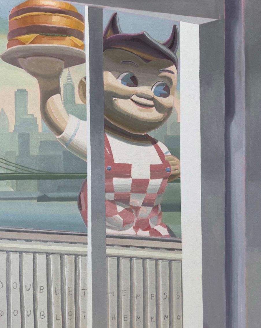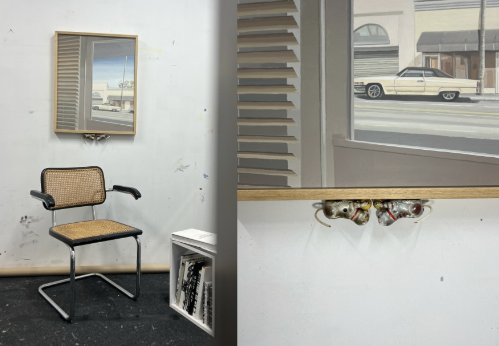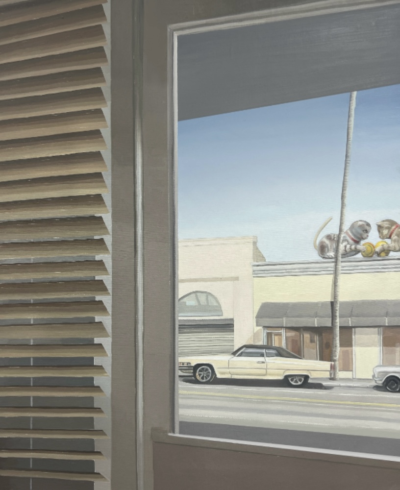 Las ciudades que se esconden tras esta colección son Las Vegas, Los Ángeles y Nueva York. Fueron clave para el desarrollo del proyecto. A lo largo de 2024 realicé un trabajo de investigación y fotografía que ha sido la base para la mayoría de las obras, jugando así con las principales características del realismo americano presentes en ellas.