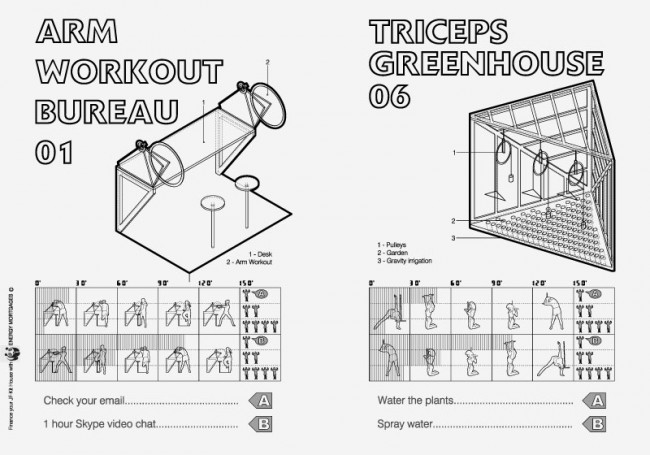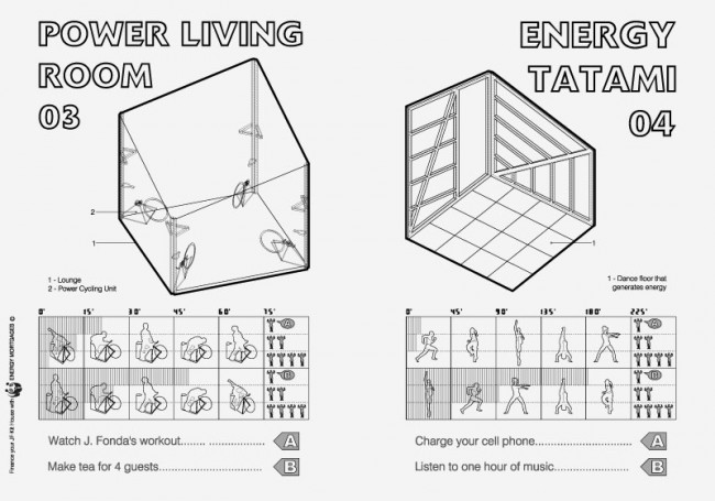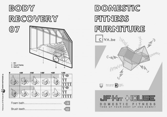 La JF·Kit House (Jane Fonda Kit House) virtualiza un futuro posible donde los ciudadanos producen una parte de los requerimientos energéticos de sus espacios domésticos con sus propios músculos: mediante una serie de ejercicios físicos diarios. Las transformaciones energéticas a las que asisten las ciudades conllevan la invención de una nueva cultura y el cuerpo es un campo de batalla central en la articulación de las controversias sobre la sostenibilidad, muchas de las cuales se “encarnan” en el cuerpo de los habitantes.