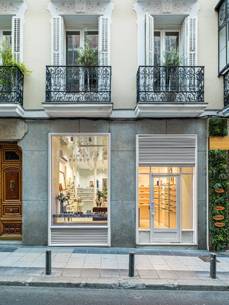 Jimmy Fairly escogió el barrio de Chueca en Madrid para abrir su nueva tienda. Todos los modelos de gafas de sol y de óptica están en un espacio acogedor y cálido.