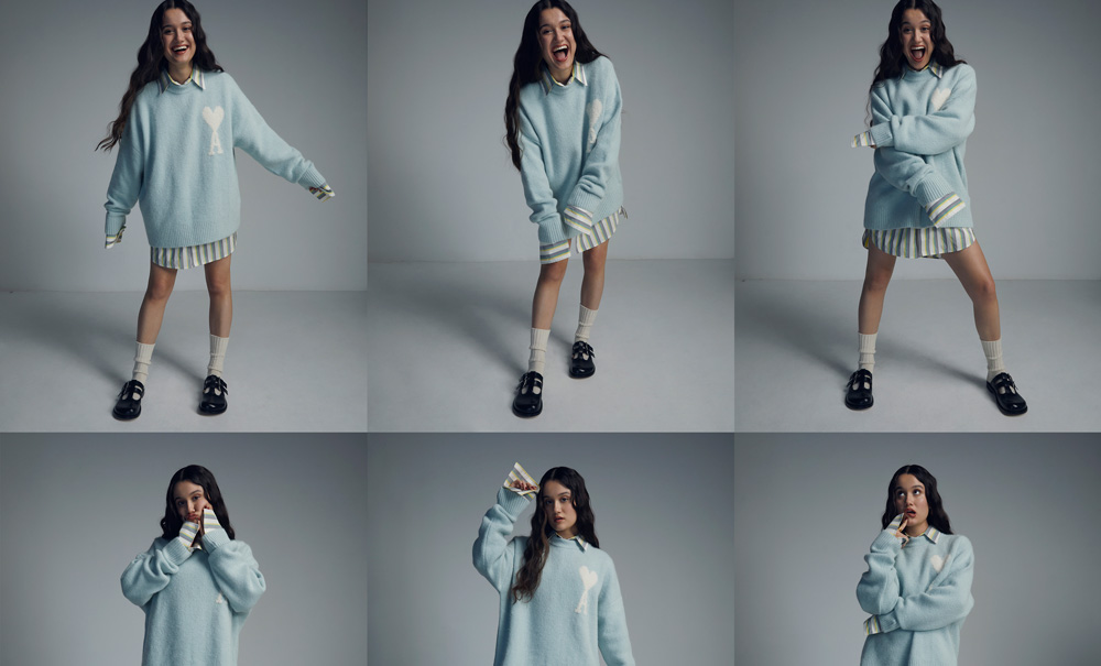 La cantautora venezolana con jersey de cashmere de AMI PARIS, camisa de LOUIS VUITTON, merceditas de LOEWE y calcetines FALKE