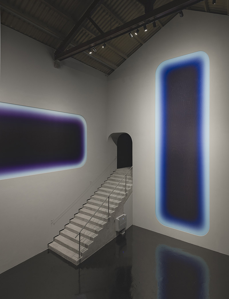 Las piezas son mucho más grandes de lo que Jonny Niesche suele hacer, con dos cuadros verticales de 10 metros de altura y uno horizontal de 20 metros. El artista diseñó el entorno de la instalación para que los visitantes puedan aislarse totalmente. Los colores se seleccionaron específicamente para crear un pequeño universo, con un suelo negro brillante y sonido ambiente abstracto que facilita la meditación. Al caminar descalzo por el espacio, parece que las obras siguen al espectador, creando una sensación de movimiento buscada por Niesche.