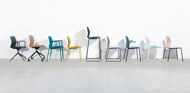 La colección Kabi es muy amplia, desde la mínima silla desnuda hasta las sofisticadas versiones tapizadas.