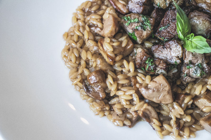 Imagen superior: Falso arroz de castañuelas ibéricas y hongos (Jornadas de producto en Carbón Negro)