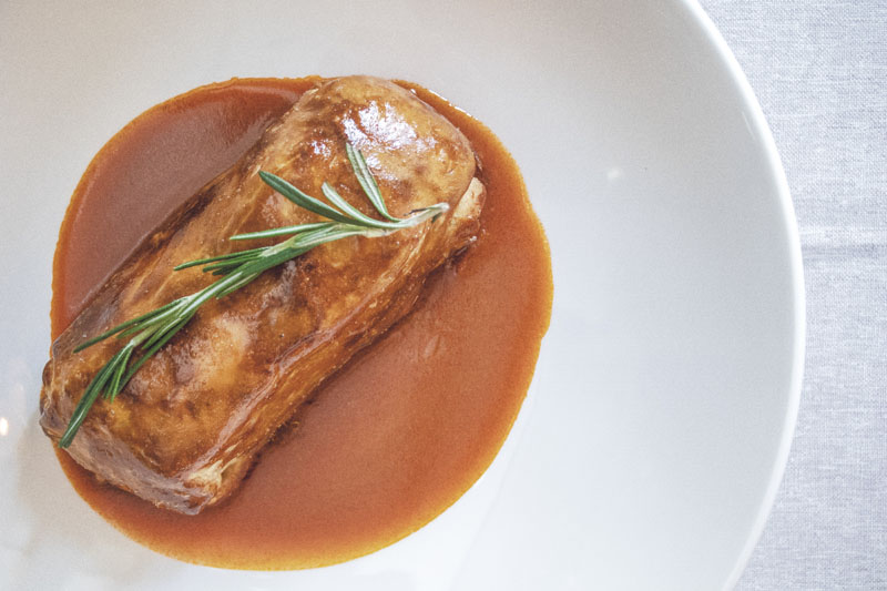 Un producto codiciado como el cerdo ibérico extremeño es el utilizado por Gonzalo Armas para elaborar los platos de estas jornadas, ¿ejemplos? el “Salmorejo de tomate asado a la brasa con torreznos ibéricos fritos” (9,50€) o una “Ensalada templada de espárragos verdes y pluma ibérica escabechada” (15,50€) o un Falso arroz de castañuelas ibéricas y hongos (18€). La carne de excelente calidad llegada de las dehesas extremeñas, se utilizará también en otros platos como la “Terrina de manitas de cerdo ibérico envuelta en hojaldre de mantequilla y salsa de choriceros” (18€) o las Carrilleras ibéricas al vino tinto sobre parmentier trufada (22€). Para postre puedes probar el “Flan de montanera al romero” (6€) y descubrir cuál es su conexión con el lechón extremeño.