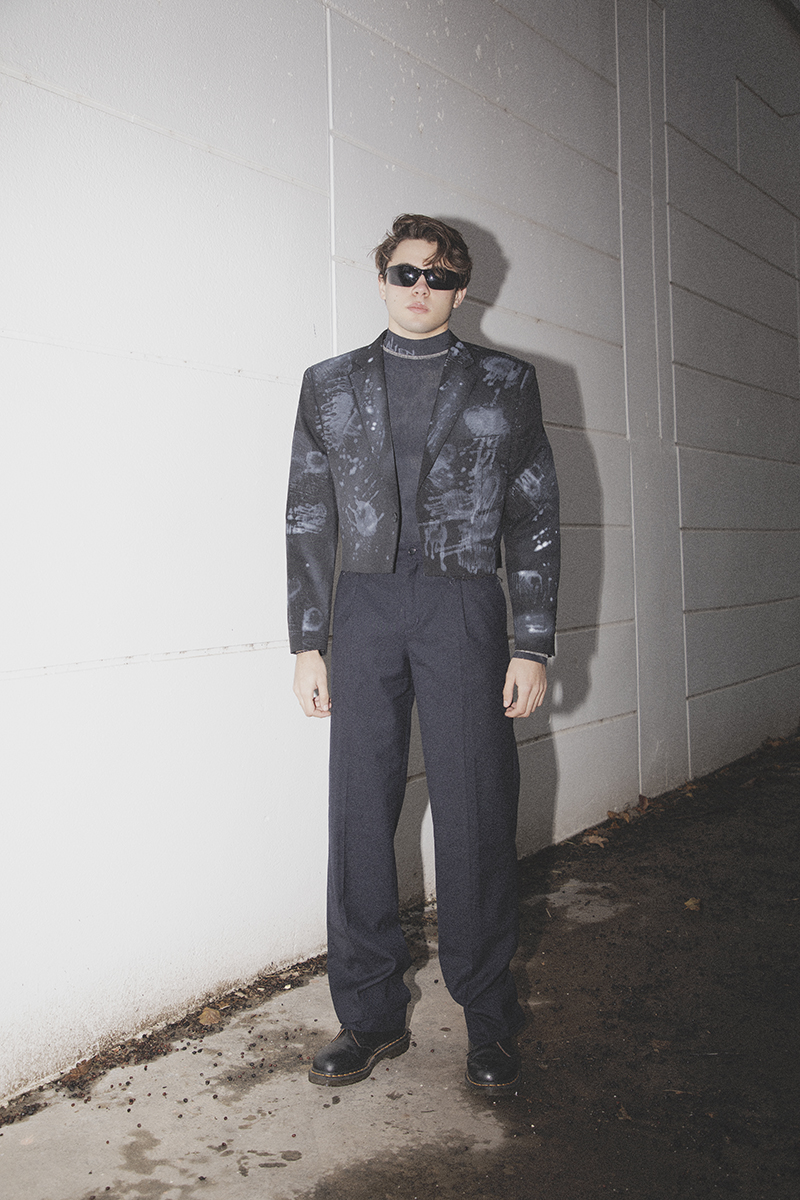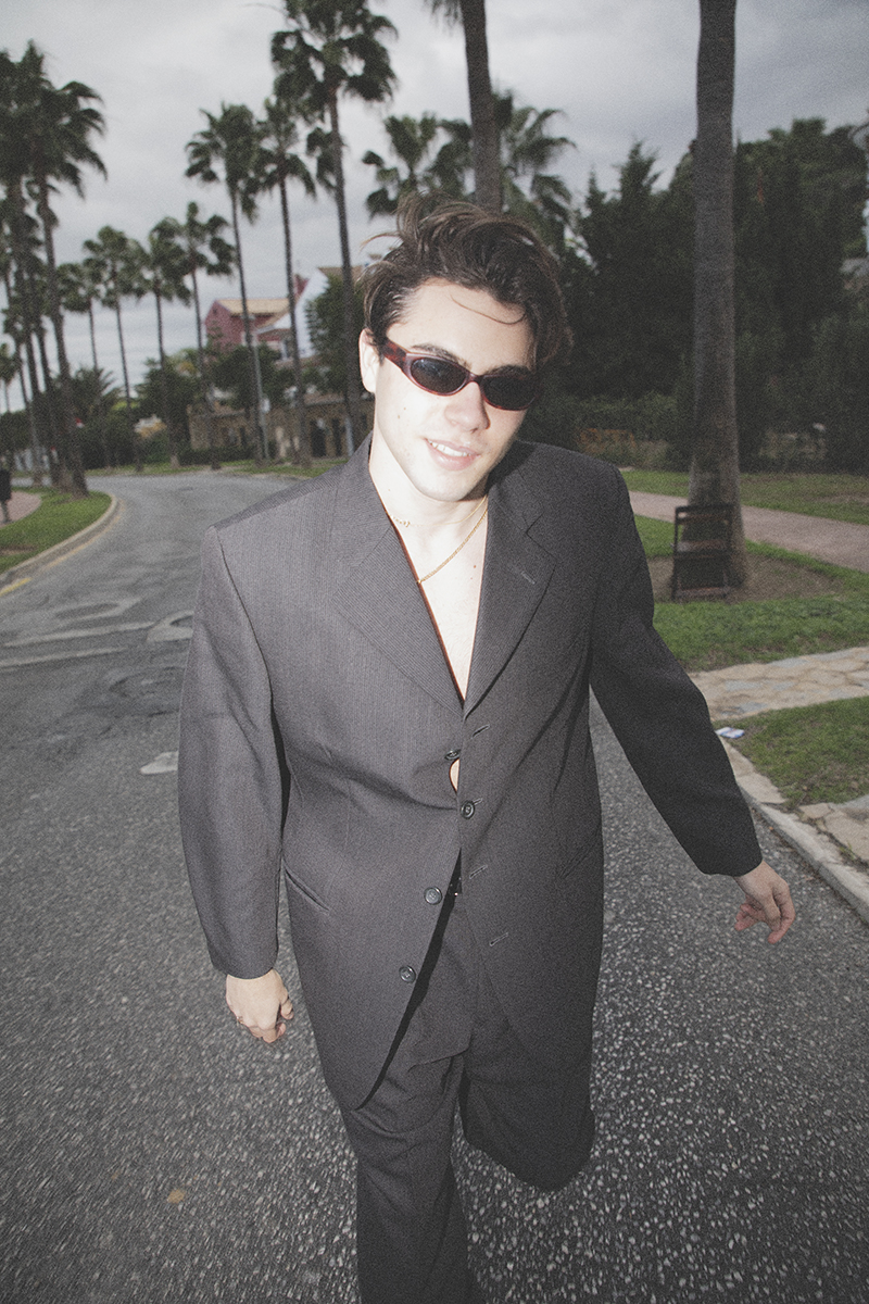 En as 4 primeras fotos, Álvaro lleva traje de Dior, gafas Indy MCF y zapatos Dr. Martens