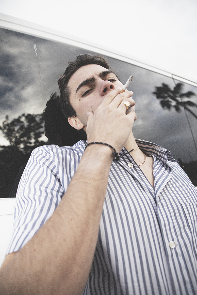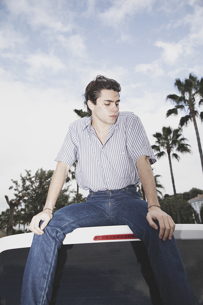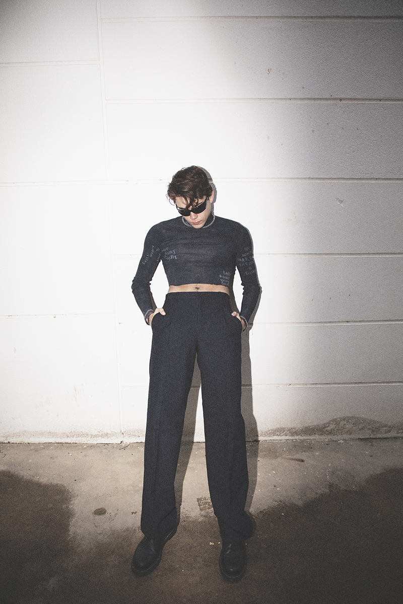 En las fotos de arriba y abajo, Alvaro lleva camiseta y chaqueta de AnyaMySecondSelf, pantalones de Jil Sander, gafas de sol Northweek y zapatos de Dr. Martens