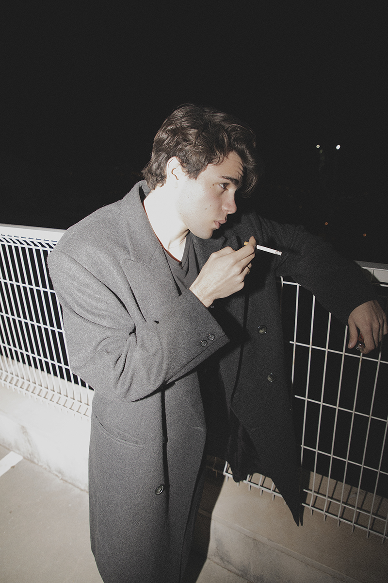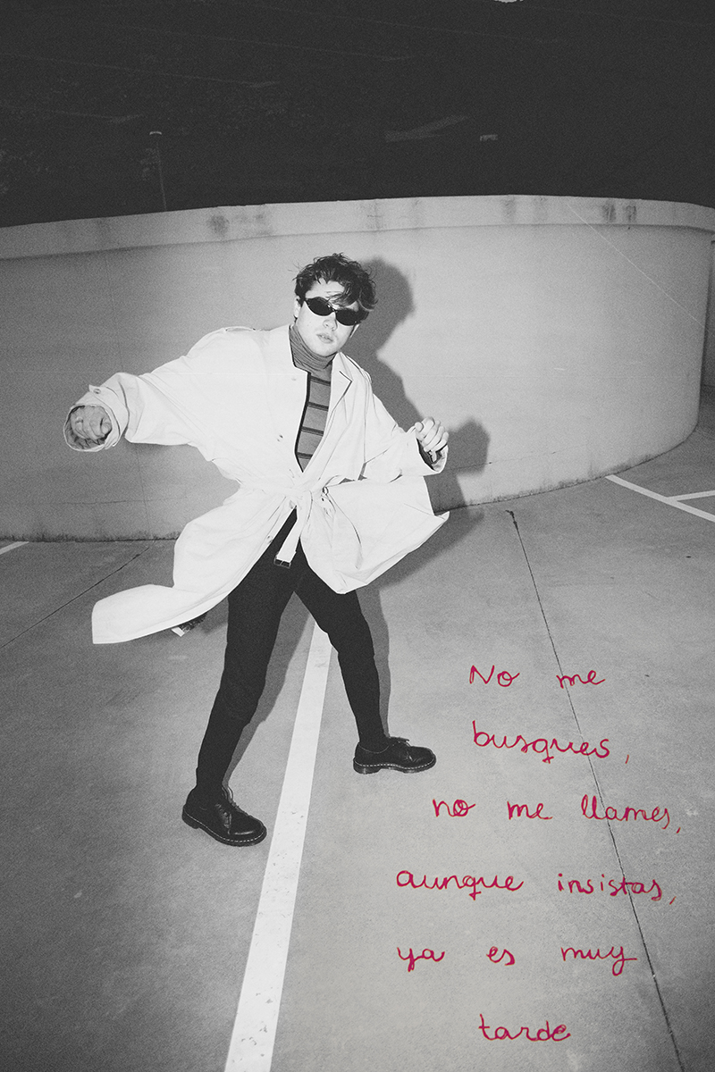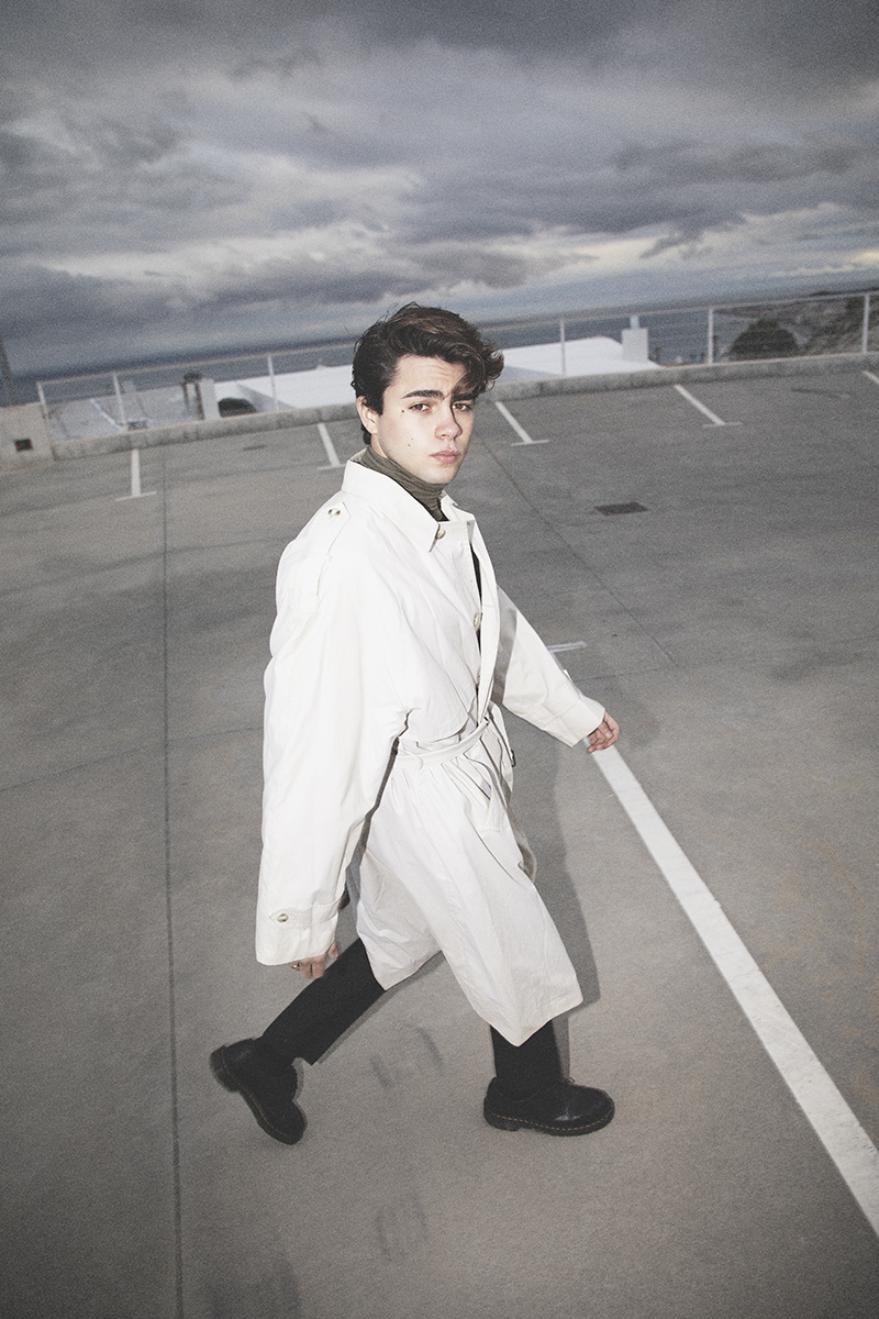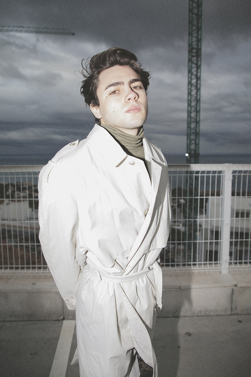 En estas fotos, Álvaro lleva gabardina de Caypre, camiseta de Calvin Klein, pantalón de Cos, Gafas de Naif y zapatos de Dr. Martens