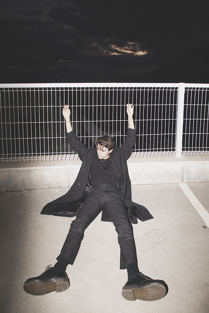 En estas fotos, Álvaro lleva abrigo Yves Saint Laurent, camiseta de Hugo Boss, pantalón de Zara y zapatos de Dr. Martens