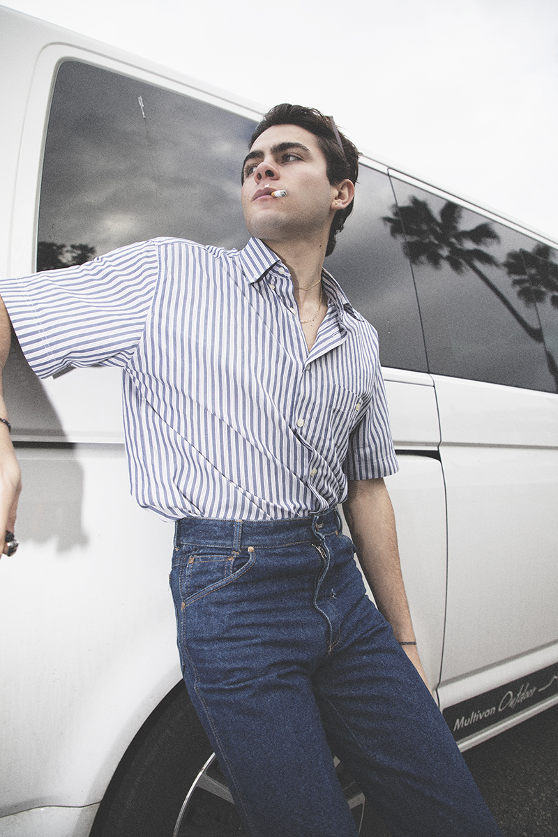 En las fotos de arriba, Álvaro lleva camisa de rayas de Vivienne Westwood, jeans de Levi’s y calzado de Dr. Martens