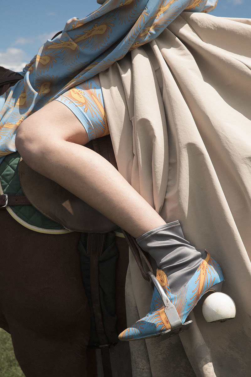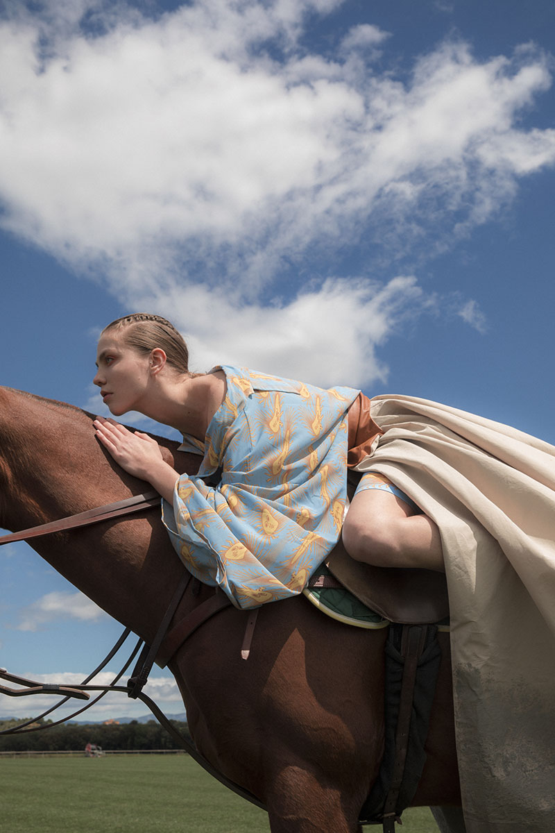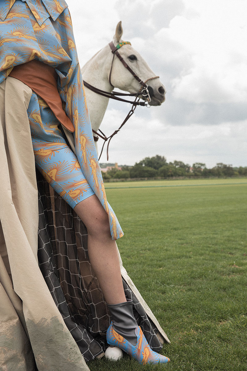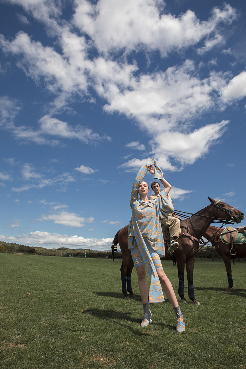“Con los estampados he querido realizar diferentes distorsiones digitales con objetos que representan a la patria y a mi país, con tejidos ligeros y suaves como la seda, para tener un tacto más cercano a Argentina” Delfina Ruiz Guiñazu