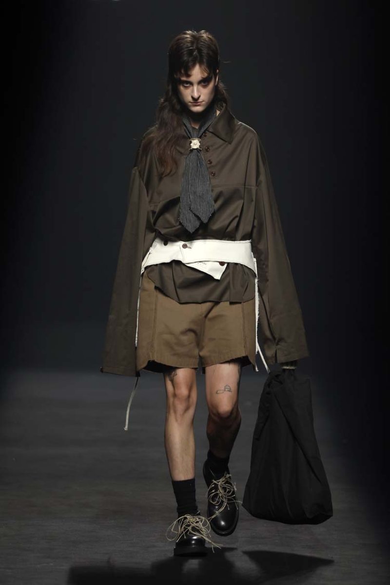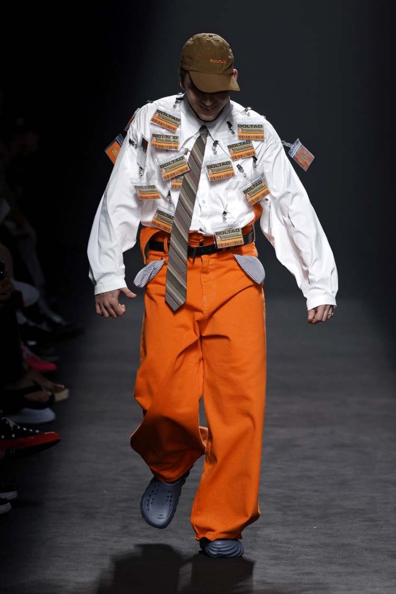 En la misma línea que en otras ocasiones, Boltad presentó su colección. Esta marca ya tiene experiencia en esta pasarela, porque ya ganó en la 20ª edición. Si en esa ocasión se centró el desarrollo plástico de la idea del silencio, en esta ocasión en un concepto más divertido. El diseñador planteó lo complicado que es llegar a esas mesas de poder, y lo representó a través de la ropa. Donde los vaqueros estaban al revés o las corbatas tenían un tamaño pequeño. Boltad, que empezó a diseñar después de ver un documental de moda, sigue con esta aventura. Nadie le para y tiene ganas de seguir avanzando con una marca que no tiene normas. Por cierto, para entender la colección debes saber que está dividida en tres actos. ¿Con cuál te quedas?