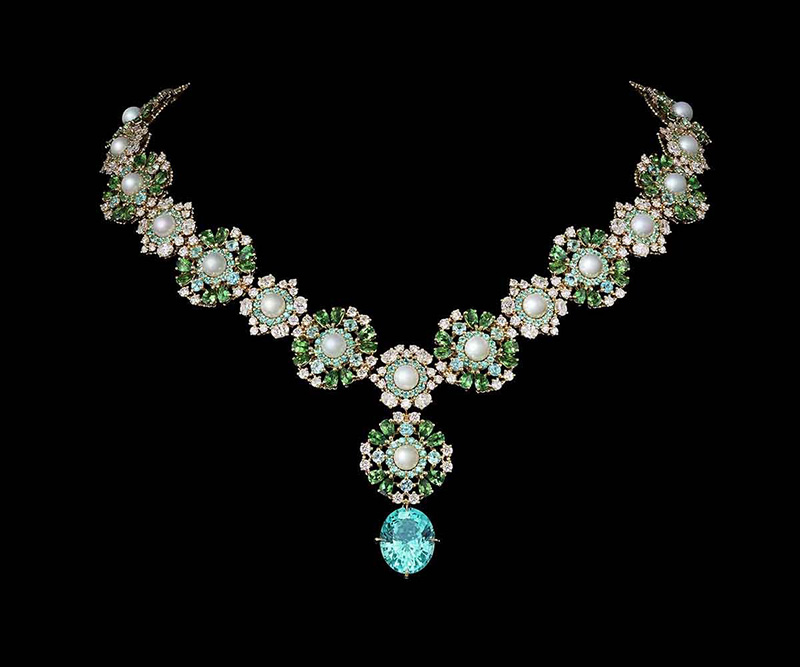 Pues Les Jardins de la Couture es precisamente eso; un ejercicio de la más fina y delicada artesanía que podemos ver en todo tipo de joyas con temática botánica. Los metales preciosos más espectaculares sirven como soporte para engastar gemas llenas de vida y color.