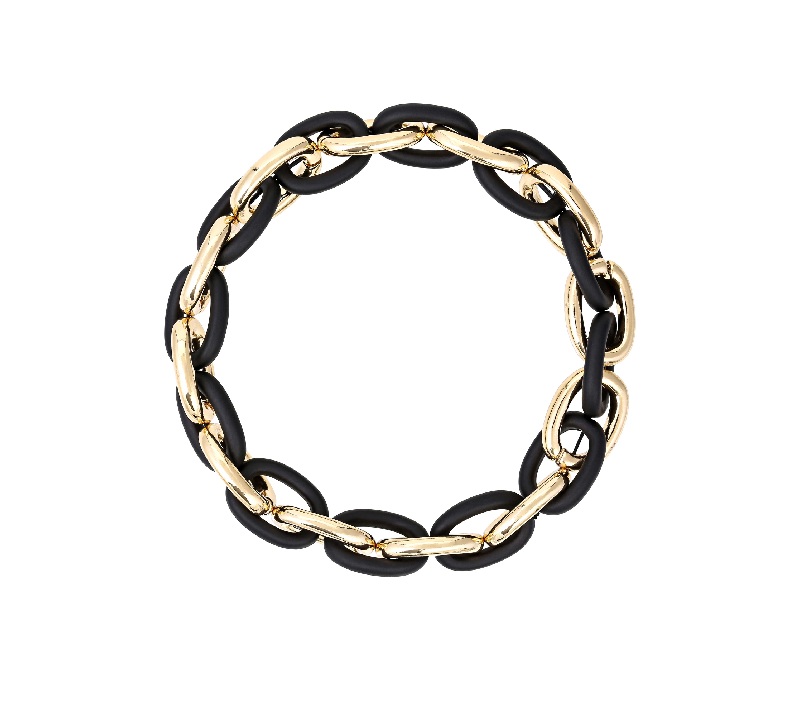 La pulsera Glamorous Night es la mejor representación de por qué ahora preferimos joyas en dorado y negro. Se trata de una pieza en formato de cadena de ancla, con eslabones de diferentes tamaños, que añade estilo a cualquier look diario. El valor de esta pulsera radica en la combinación de ambos colores, lo que permite a quien la lleva combinarla con distintos formas de vestir.