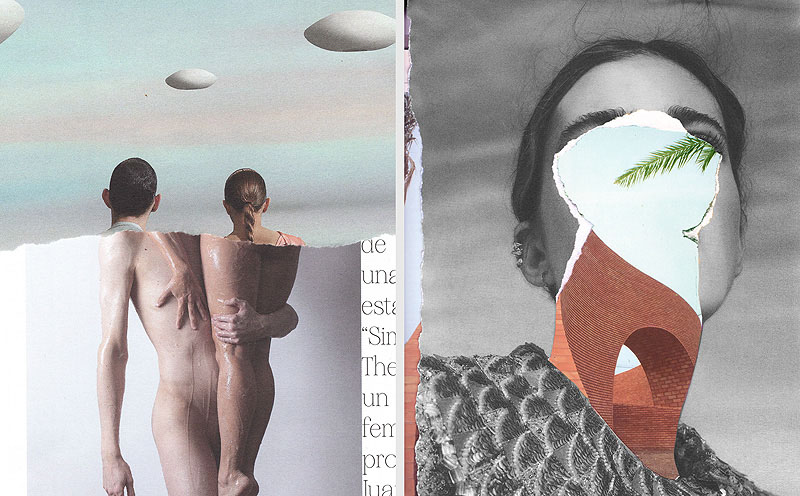 ¿Cómo describirías tu sello personal a la hora de crear? Este fin de semana dejé el móvil grabando mientras trabajaba. Viendo la grabación de cómo pasaba el cúter por los diferentes cuerpos y rompía algunas páginas me di cuenta de que mi trabajo tiene un punto visceral e intuitivo. Incluso un punto de diversión. Detrás de mis composiciones hay un imaginario vinculado a los estudios de género, la identidad y diversas lecturas sobre los análisis de esta sociedad hipermoderna en la que vivimos. Eso no significa que mi trabajo cuente todo eso pero me gusta pensar que este telón de fondo le da una unidad y un sentido.