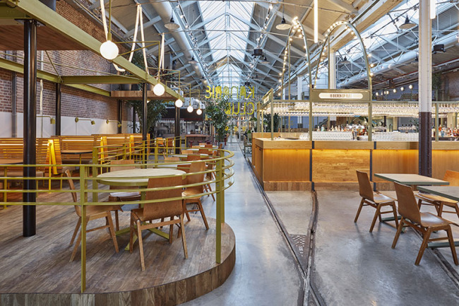 Entre lo delicado y un espacio industrial en bruto péndula Kanarie Club, el restaurante polivalente diseñado por el estudio Holandés Studio Modijefsky.