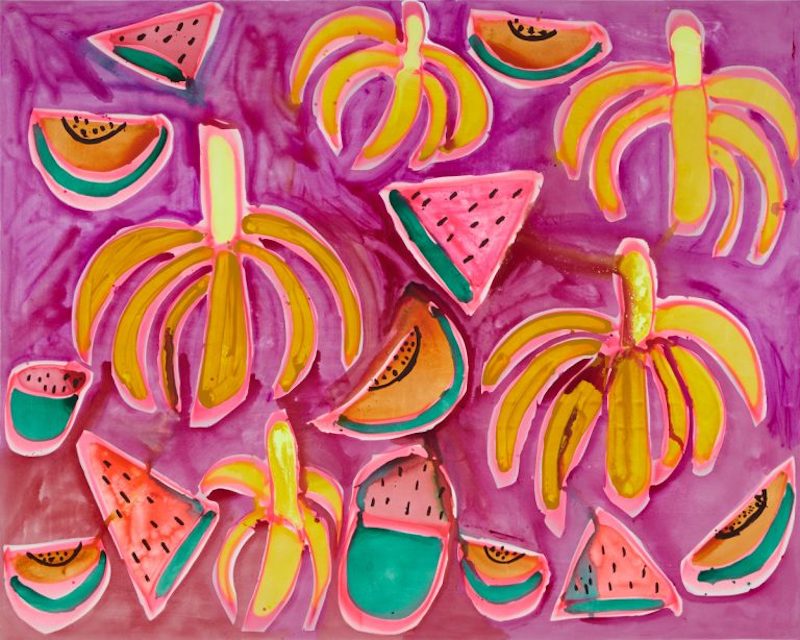 Katherine Bernhardt (1975, St Louis, USA) se hizo conocida en el mundo del arte con sus retratos de top models, explorando la fotografía de moda hiperrealista y las nociones convencionales de belleza.
