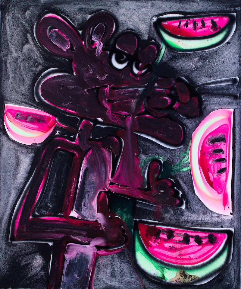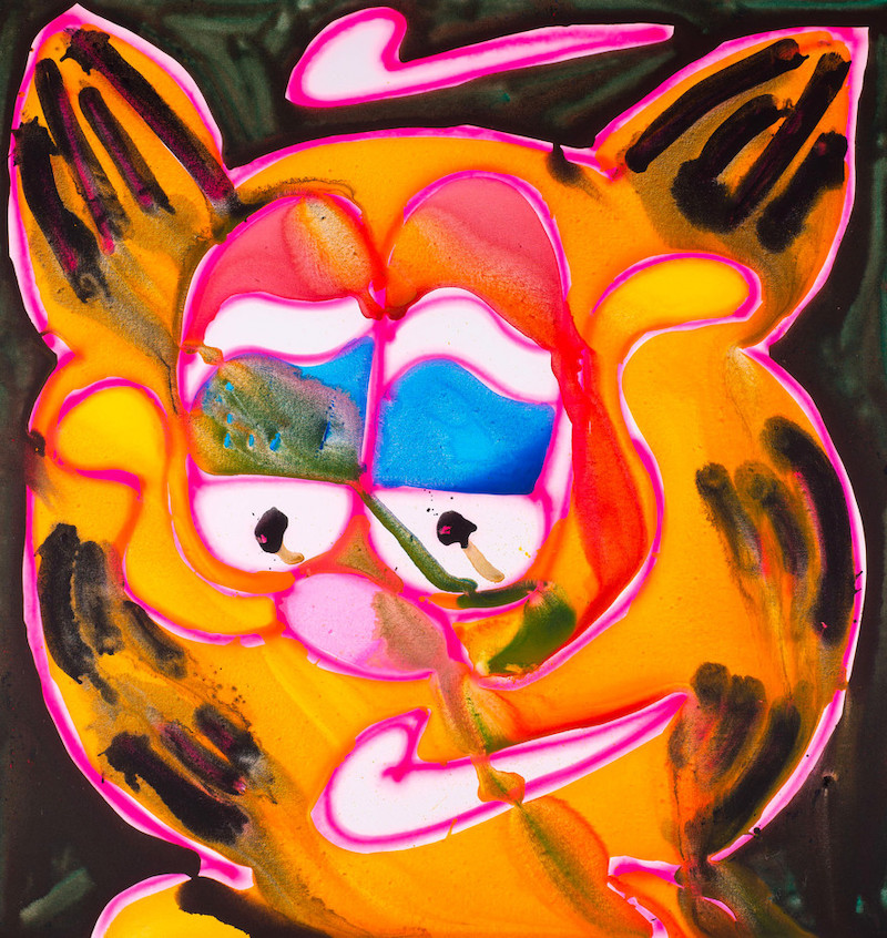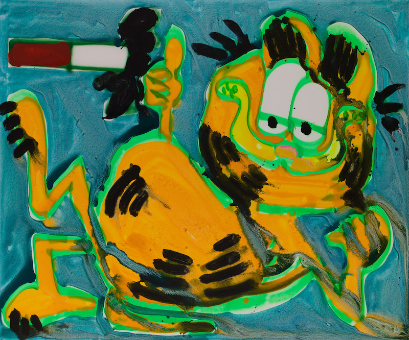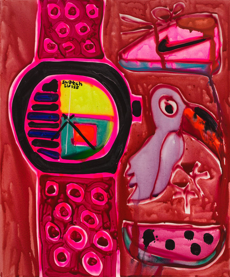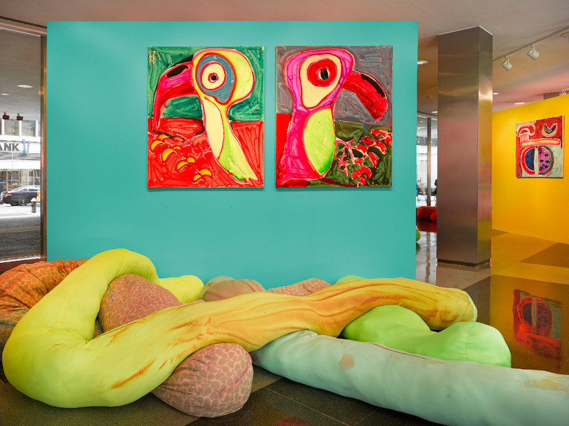 También produce cuadros de tamaño coleccionista. Los lienzos de Katherine Bernhardt son aparentemente provisionales, irradiando energía colorida y explosiva.