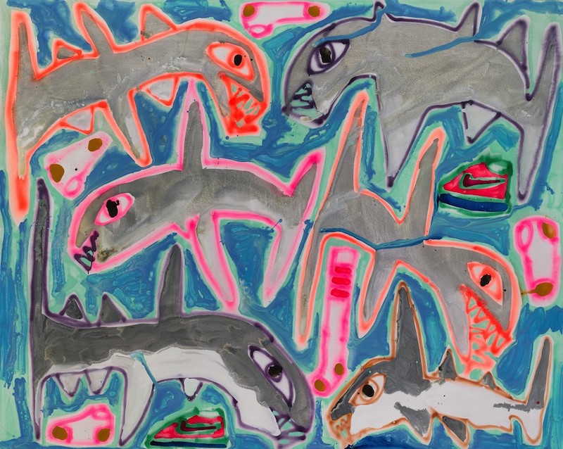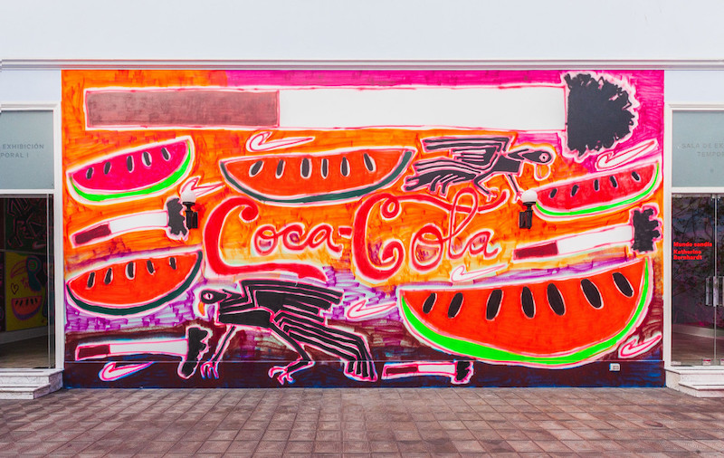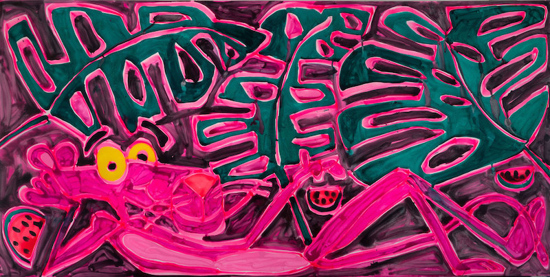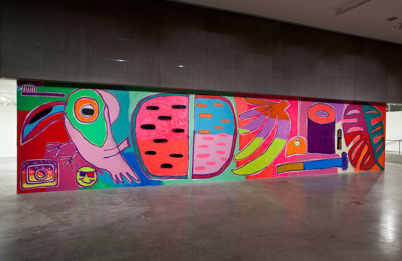 Más recientemente, ha centrado sus energías en una serie de murales realizados con patrones o plantillas. Obras a gran escala en tonos tropicales que representan bienes de consumo banales, de una composición dislocada, fluidos y apresurados.