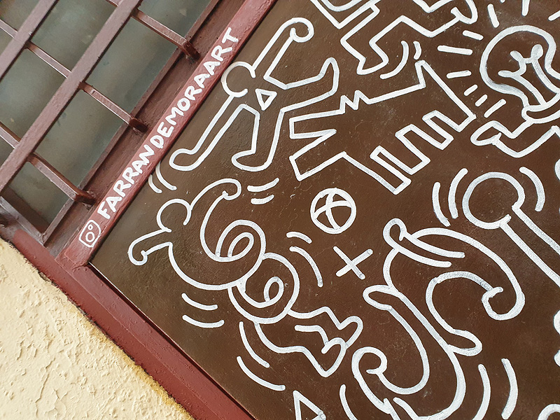 Homenaje al graffiti de Keith Haring a cargo del artista Farrandemora en colaboración con David Alba en el barrio de Lavapiés.