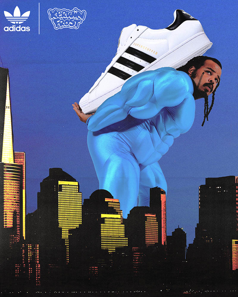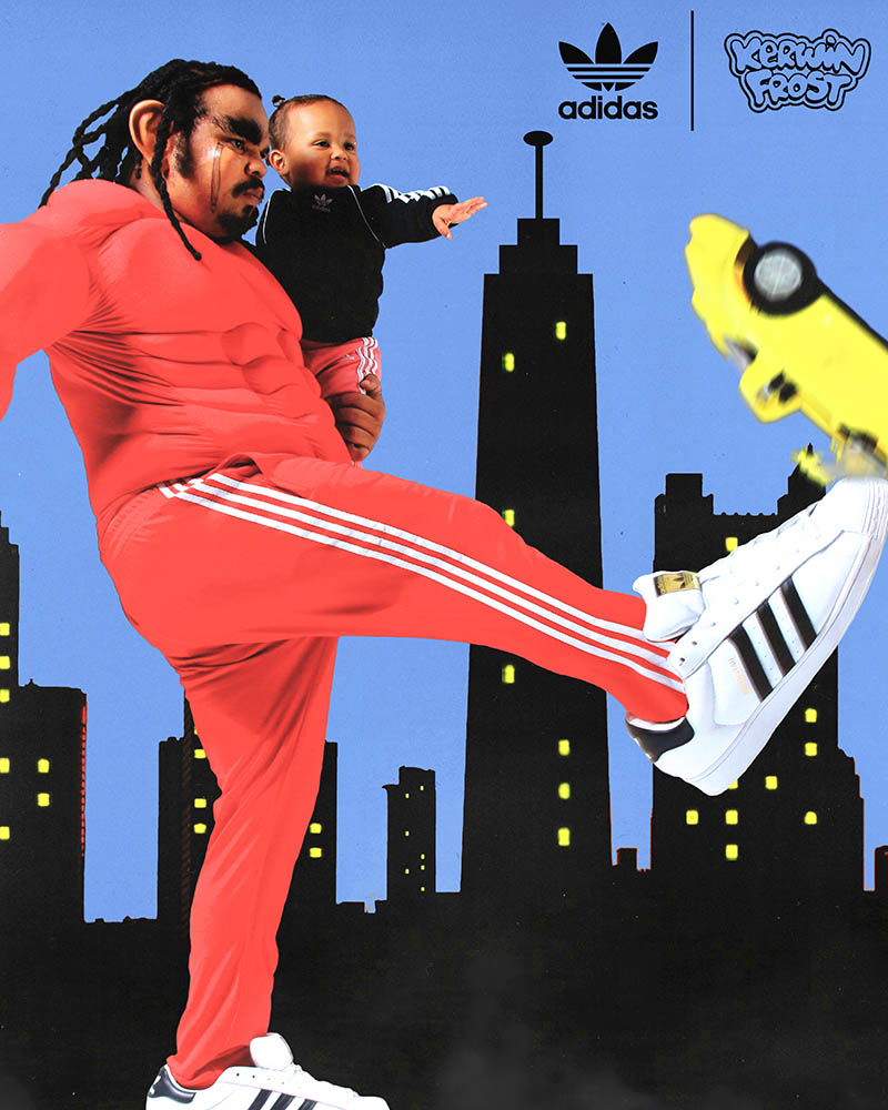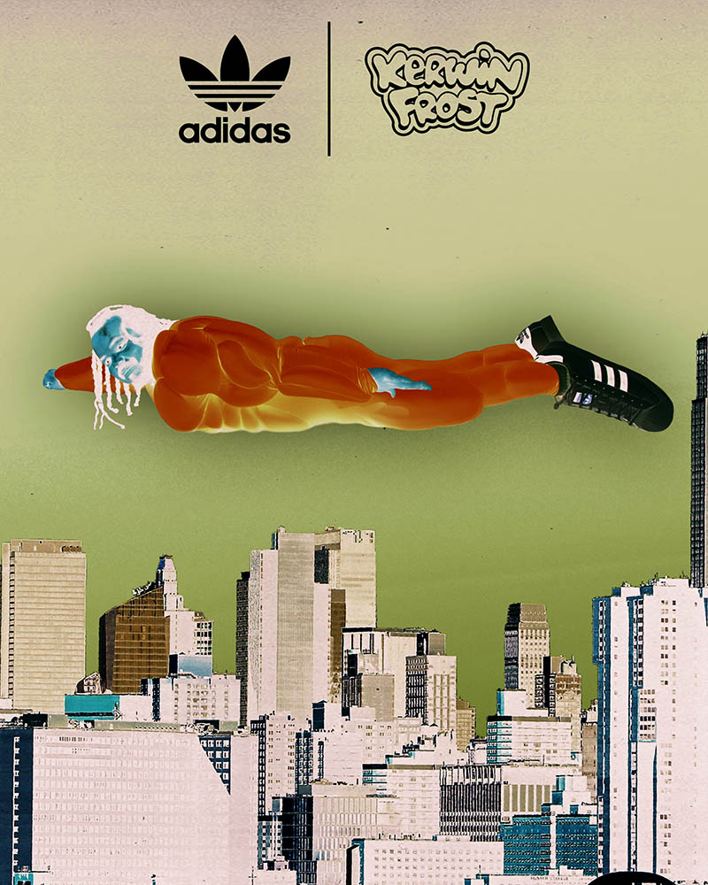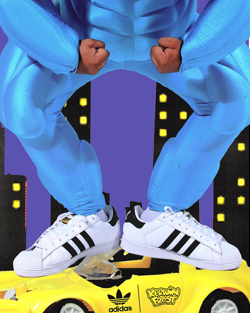 Kerwin Frost es un artista y dj neoyorquino con un estilo extravagante e informal. Ahora colabora con adidas Originals en las nuevas Superstar Superstuffed.