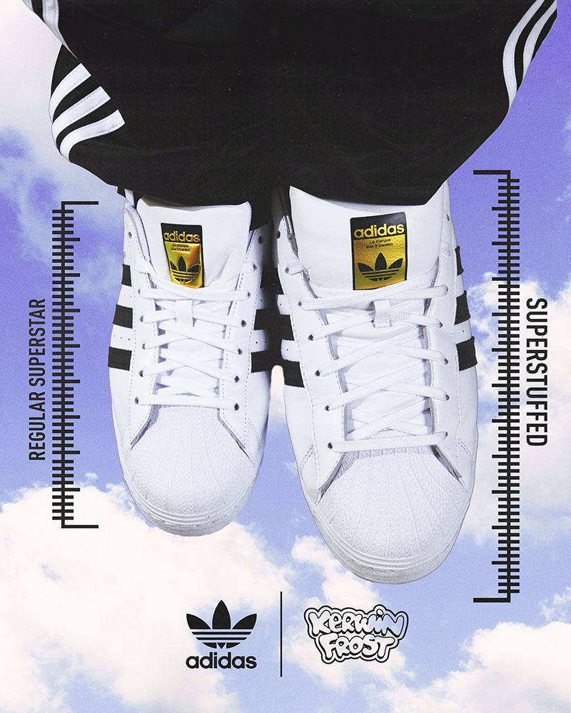 Kerwin Frost es conocido por lo camaleónico de su personaje. Productor, DJ y presentador de un original formato de entrevistas se convierte ahora en aliado de adidas. Después de anunciar la colaboración a principios de 2020, adidas Originals x Kerwin Frost acaba de presentar el primer lanzamiento, la silueta Superstar Superstuffed. Una revisión exagerada de una zapatilla clásica.
