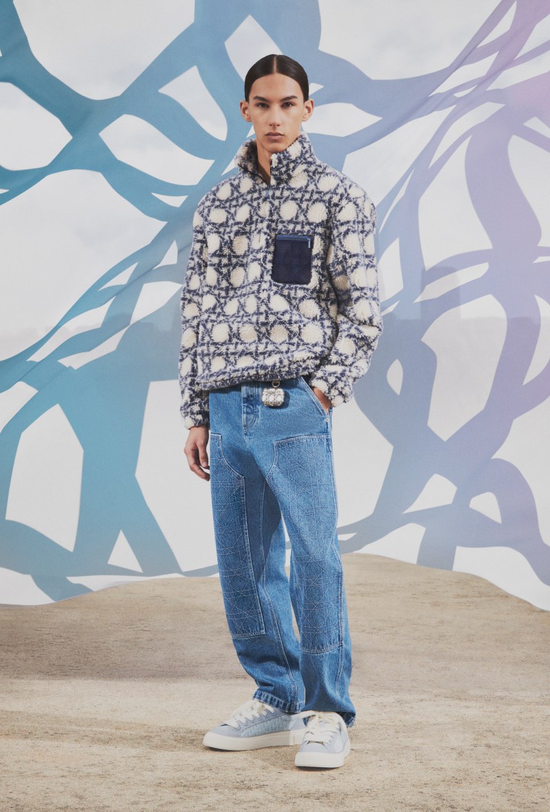 Como pieza más fuerte para nuestros looks urbanos de Dior, la colección propone un forro polar de corte oversize ideal para combinar con jeans. Y, como broche de oro para estos looks, tenemos un vaquero carpenter con los parches en Cannage. El resto de esta colección se comprende de básicos lisos ideales para hacer layering con opciones en denim también. Estas prendas se decoran con un charm D-I-O-R en dorsales y etiquetas exteriores.