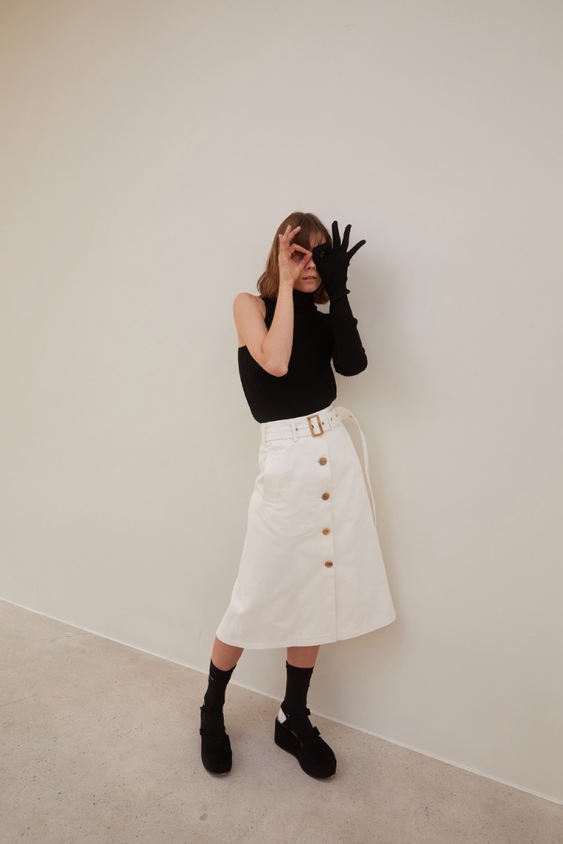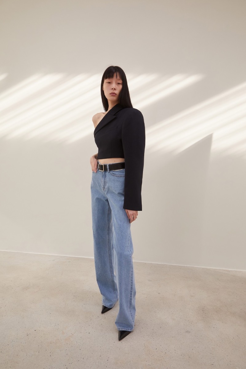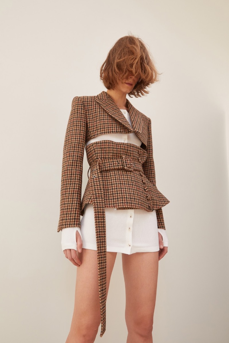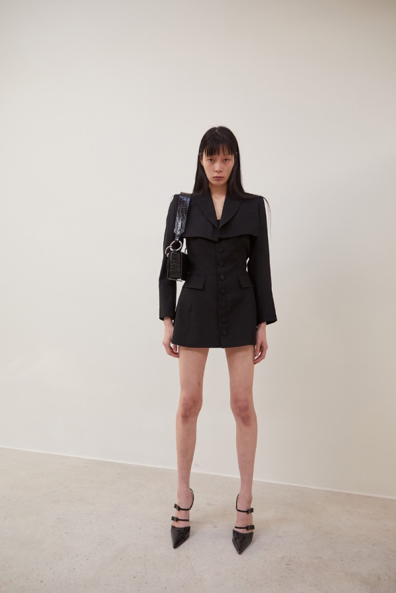 Lazos, drapeados, botones perlados de grandes dimensiones, y cuellos alargados que se ensanchan, conforman algunos de los detalles que dotan de interés estético y visual a las prendas. Items del Day to Day como abrigos a cuadros, conjuntos de traje, faldas, americanas y total looks de denim son algunas de las propuestas de Kimhekim FW21-22. A primera vista sofisticadas, femeninas y románticas, las vestimentas de Kimhekim terminan sorprendiendo al que presta atención y encuentra el toque disruptor y la esencia streetfashion que esconden en sus detalles.