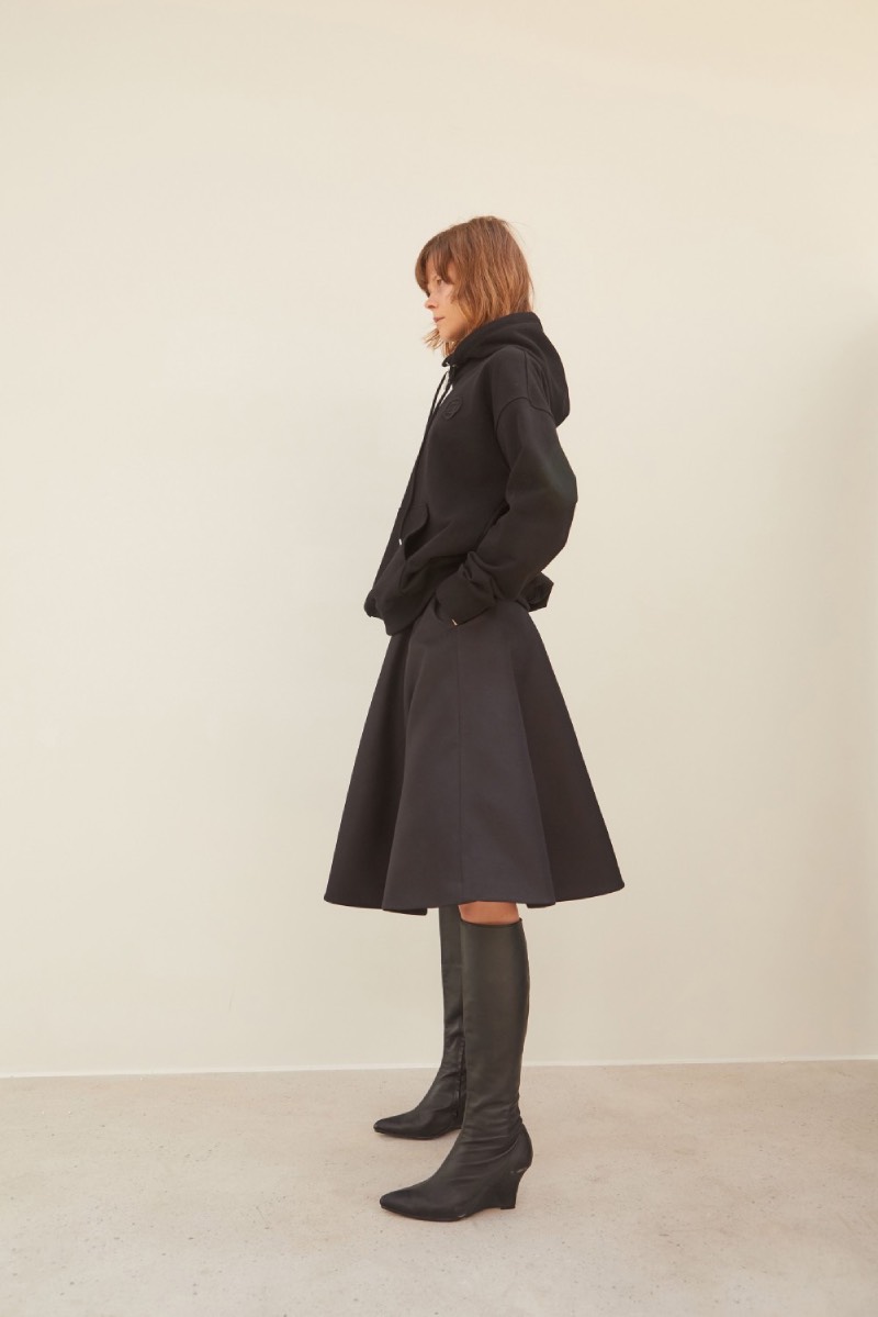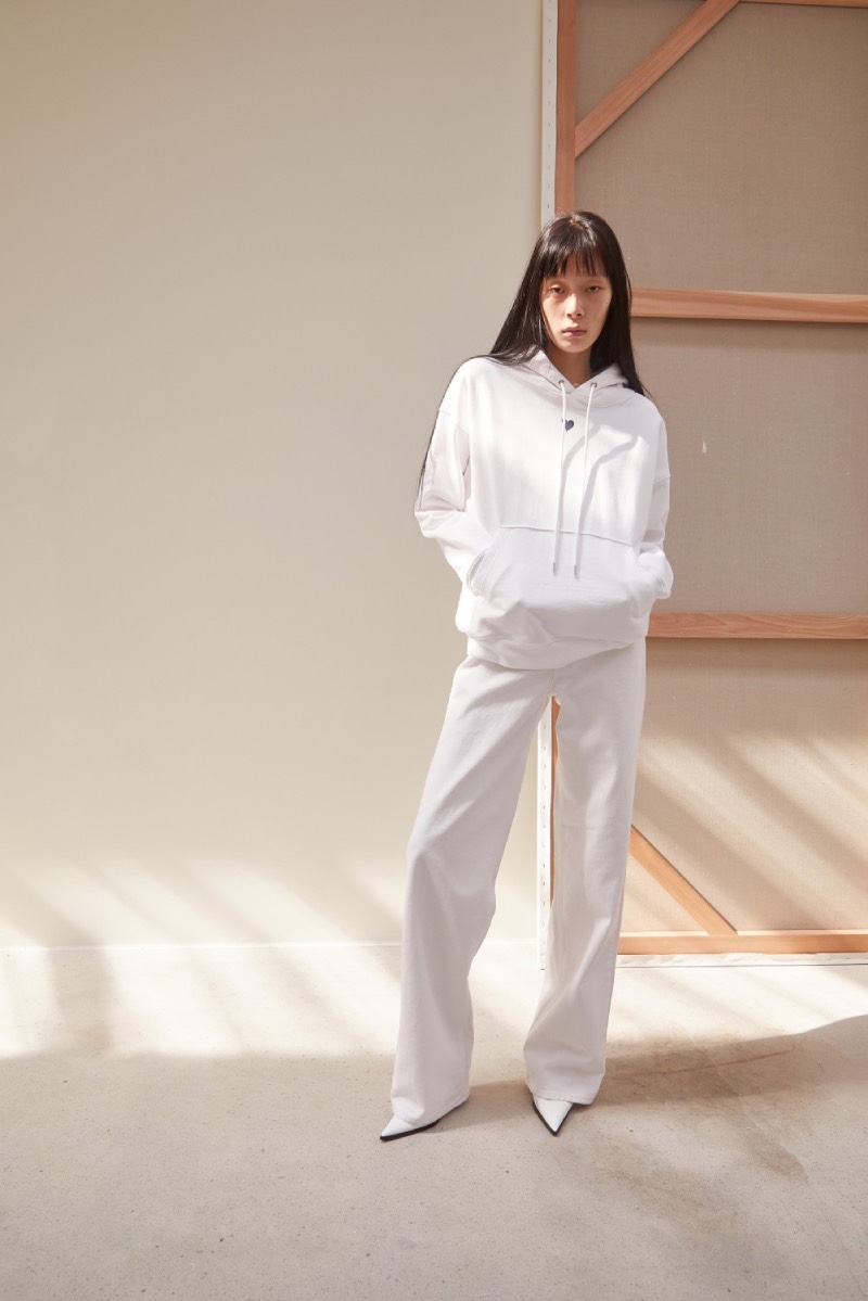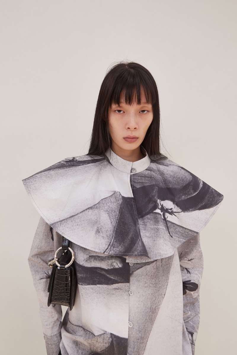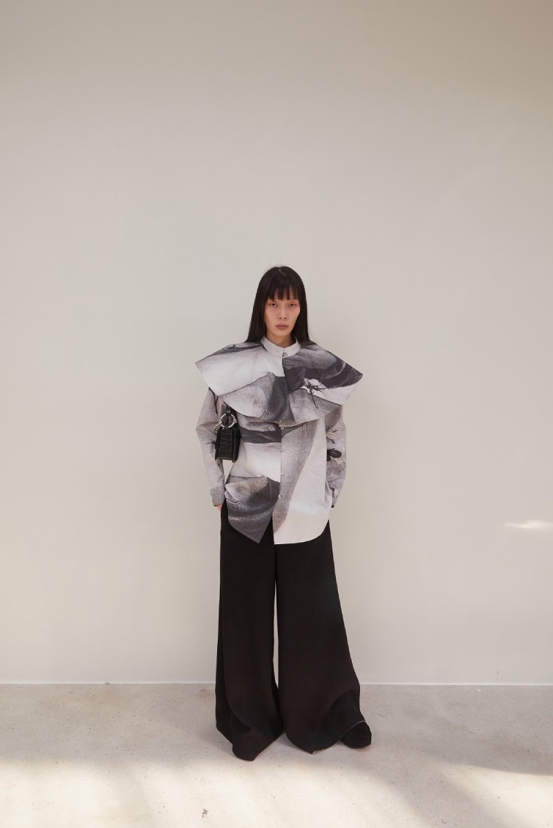 Un camino de retrospección ha sido el punto de partida para Kimhekim FW21. Volviendo la vista cinco años atrás y con una paleta de color que parte del blanco y el negro, la línea juega con toques en camel, diseños abstractos que parten de manchas de grises y looks salpicados por flores. La estética moderna, minimalista y llana configura así una obra visual en conjunto apacible, disfrutable y llamativa. Un take on modern fashion original, una perspectiva distinta que combina armoniosamente lo elegante con el vanguardismo tan valorado actualmente.
