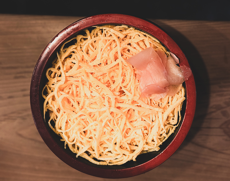Entre sus elaboraciones, destaca el chirashi, precursor del poke hawaiano y compuesto por arroz de sushi en un bowl, acabado con pescado crudo por encima. Otra elaboración, por la que es conocido Sushizen, es el kinshi tamago- una tortilla japonesa muy fina, cortada en finos hilos-.