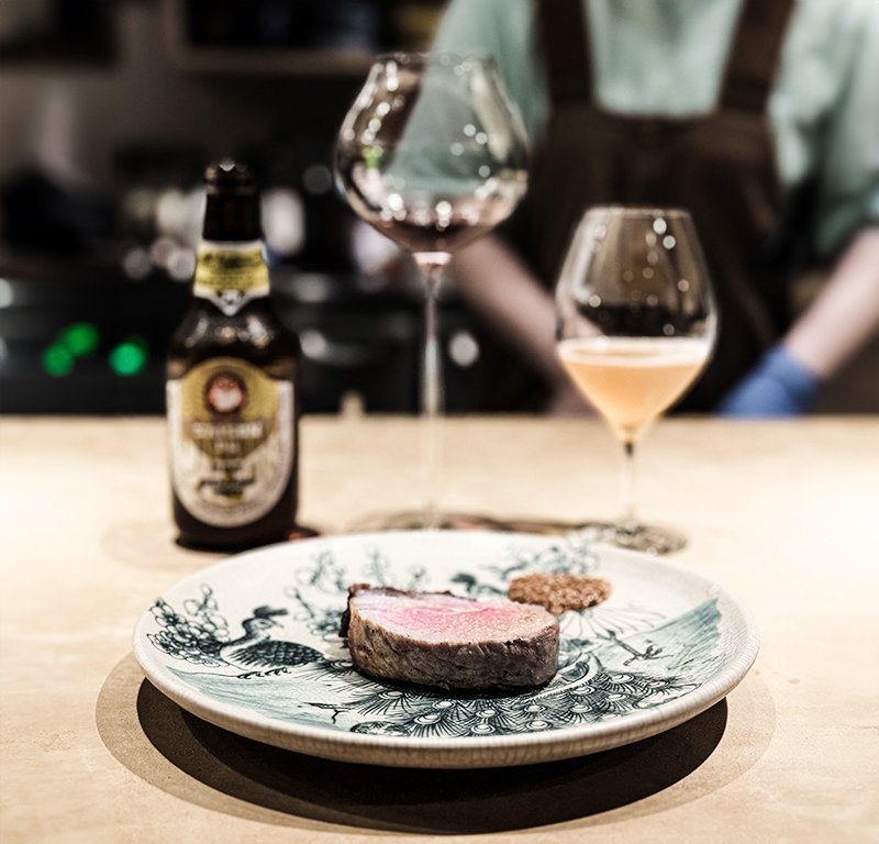 Tanto el personal de sala como cocina contrastan con la arquitectura tradicional de la casa. Un personal muy dinámico, nada encorsetado y con mucho ritmo. La bodega está repleta de vinos y sakes de productores pequeños, donde lo más interesante radica en que la mayoría de sus referencias se venden por copas, dando, así, la oportunidad de probar diferentes vinos japoneses, que junto a la gran variedad de cervezas locales hacen de esta una bodega variada.
