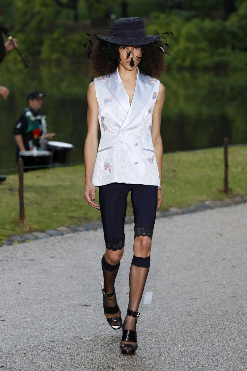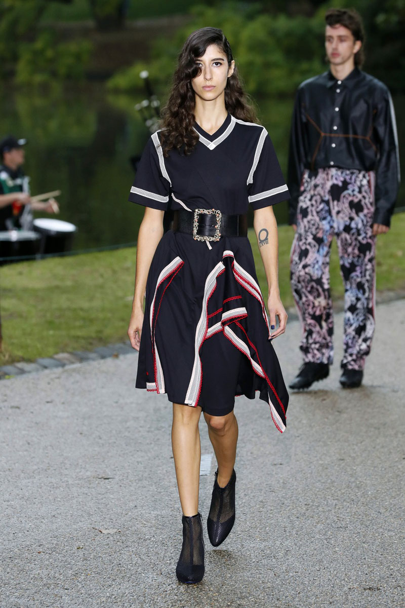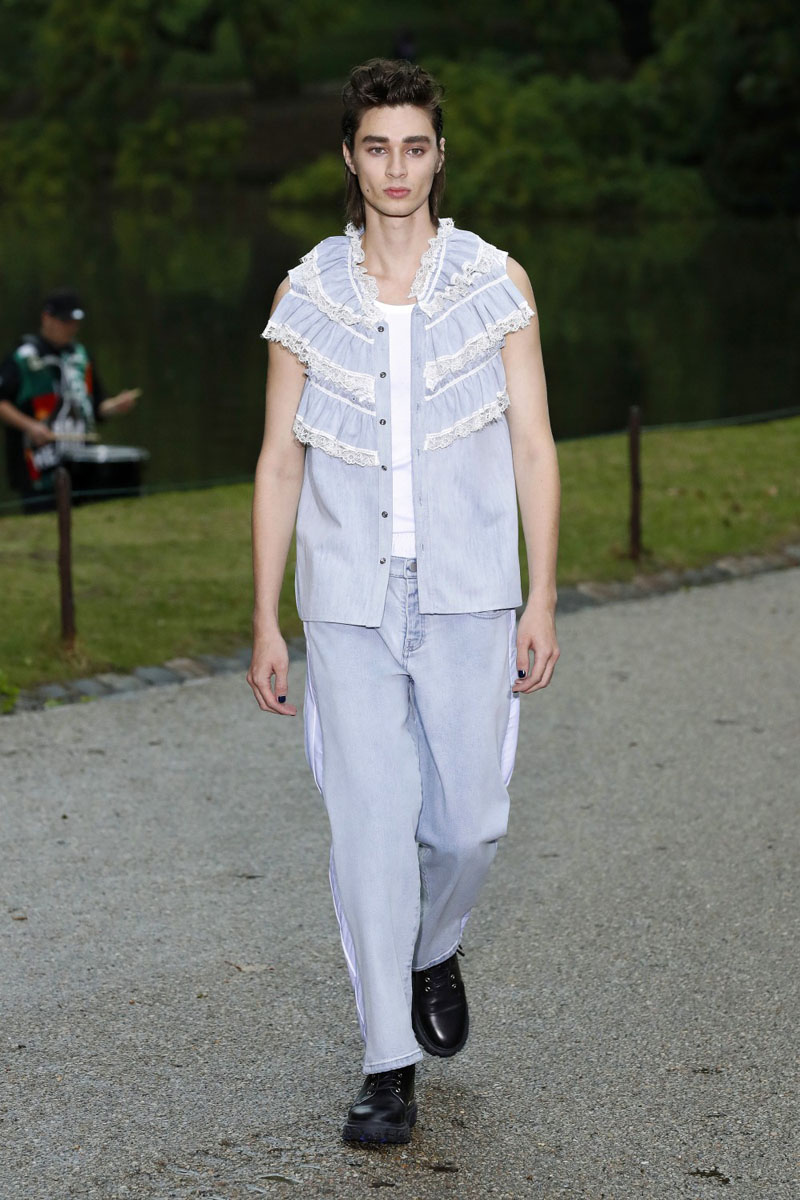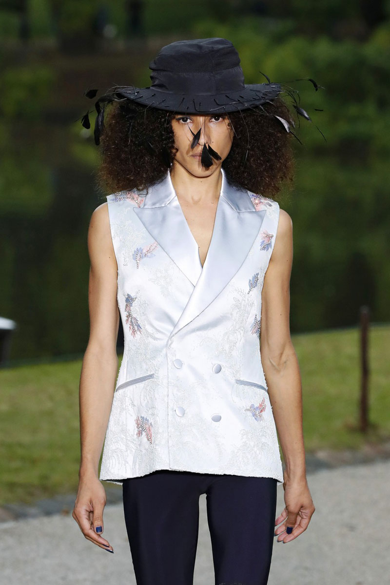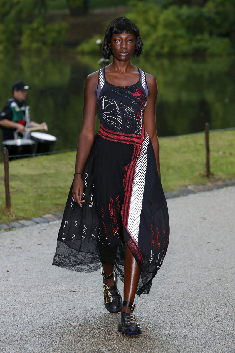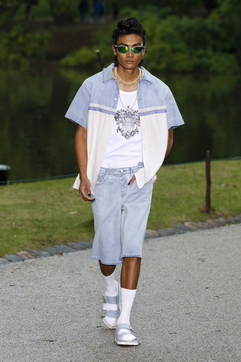 El poderoso espectáculo de Koché SS21 llegó a su fin después de que los modelos se colocarán delante de un estanque a las orillas del parque des Buttles-Chaumont Tras esto la creadora Christelle hizo un recorrido por el camino principal del parque y se despidió entre fuertes aplausos de todos sus asistentes. La diseñadora quiso volver a emocionarnos con sus diseños. Y ha quedado claro que lo ha conseguido.