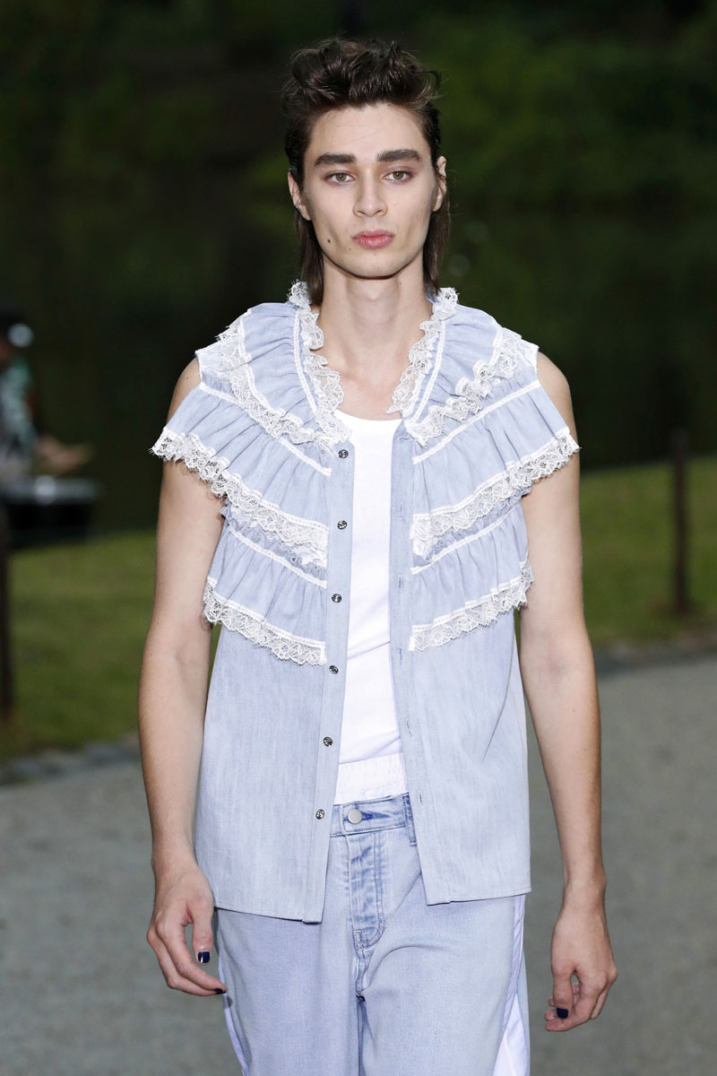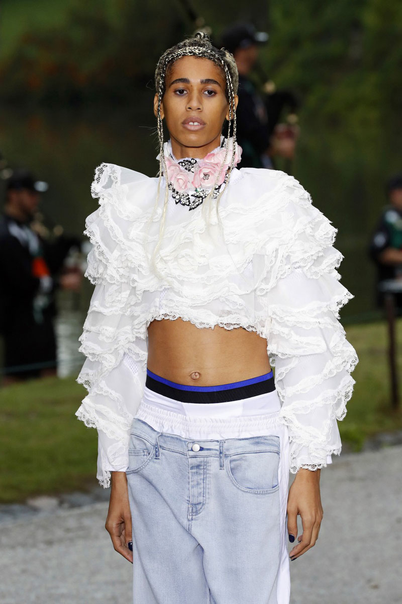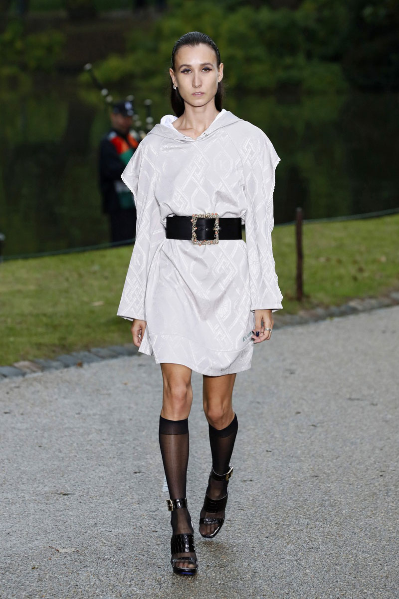 A pesar de la incertidumbre que vive la alta costura desde que comenzó la pandemia, las casas de moda como Koché siguen apostando por mostrar en la pasarela sus colecciones cumpliendo con todas las medidas de seguridad. Christelle Kocher, la diseñadora que creó la marca hace ya cinco años, volvió una vez más a presentar una fusión perfecta entre el sportswear y la alta costura francesa. Vestidos slip, camiseros con denim, corpiños con pantalones de cintura alta, prendas con volantes y plumas, sujetadores deportivos, bóxers adornados con encajes y maravillosos vestidos de cóctel con capucha hechos en jacquard paisley. Los looks masculinos estaban formados por pantalones cortos con estampado acid wash y zapatos y sandalias a juego, chaquetas vaqueras con estampados florales y blusas de seda estilo veterano de Vietnam sobre pantalones de chándal.