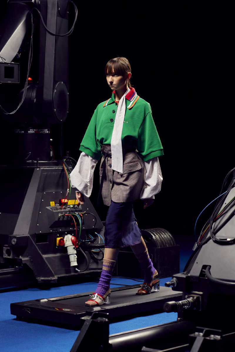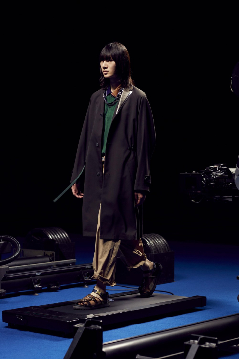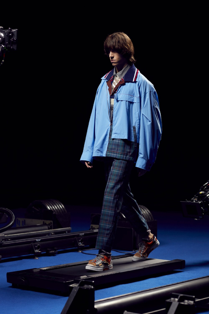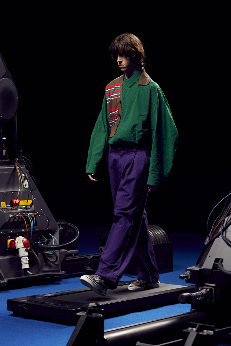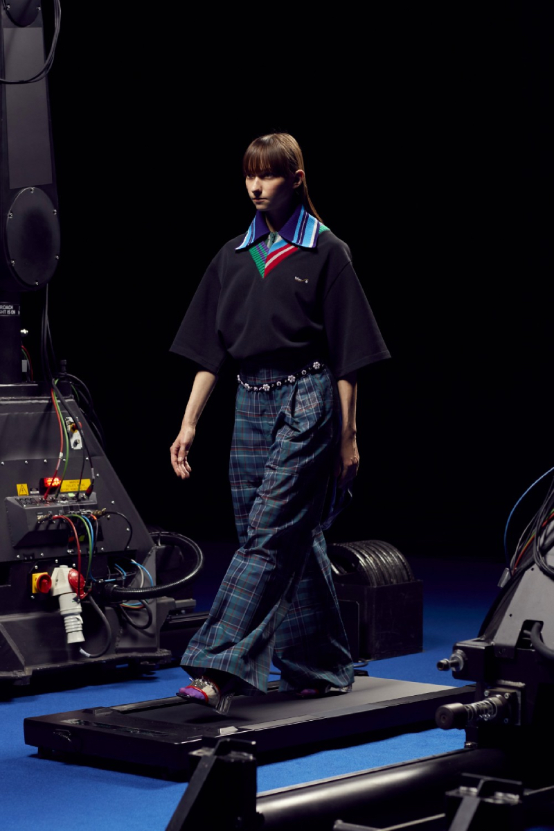 La colección de Kolor SS22 ha sido estrenada bajo un halo de futurismo tecnológico que nos recuerda a una de las presentaciones más emblemáticas del mismísimo Alexander McQueen. Posicionando a los modelos en una cinta de correr y recogiendo planos circulares desde diferentes perspectivas, las cámaras recogen todos y cada uno de los detalles de este lanzamiento tan exclusivo.