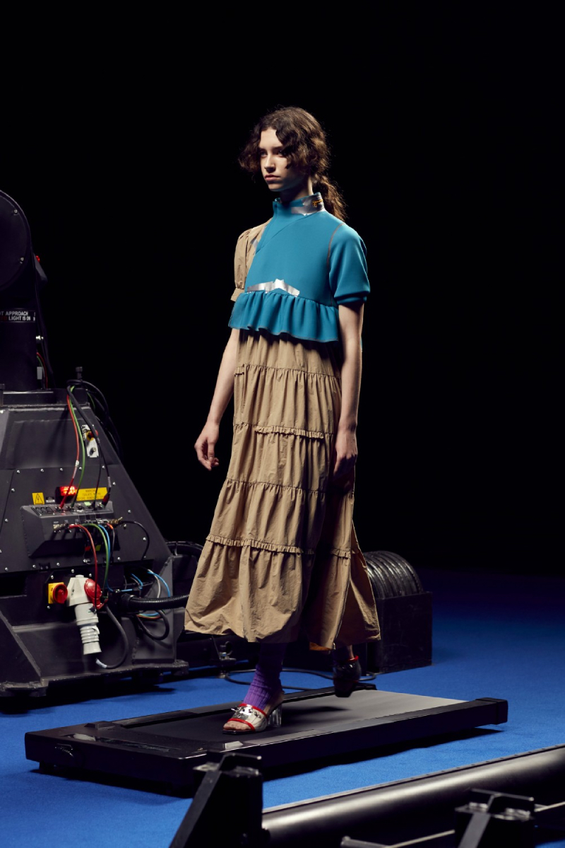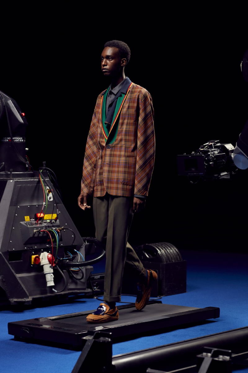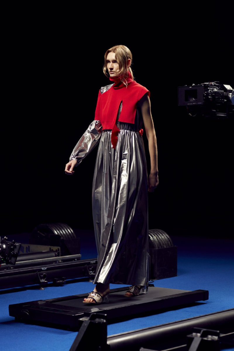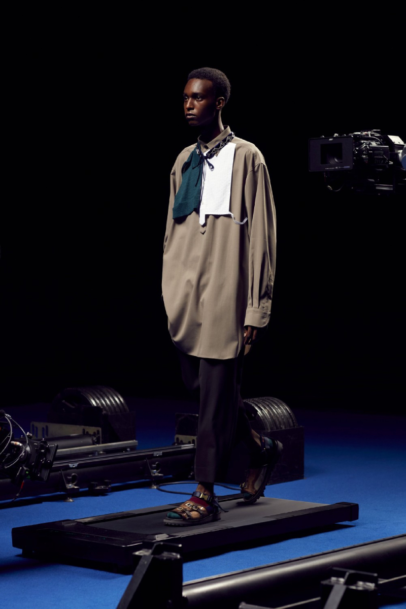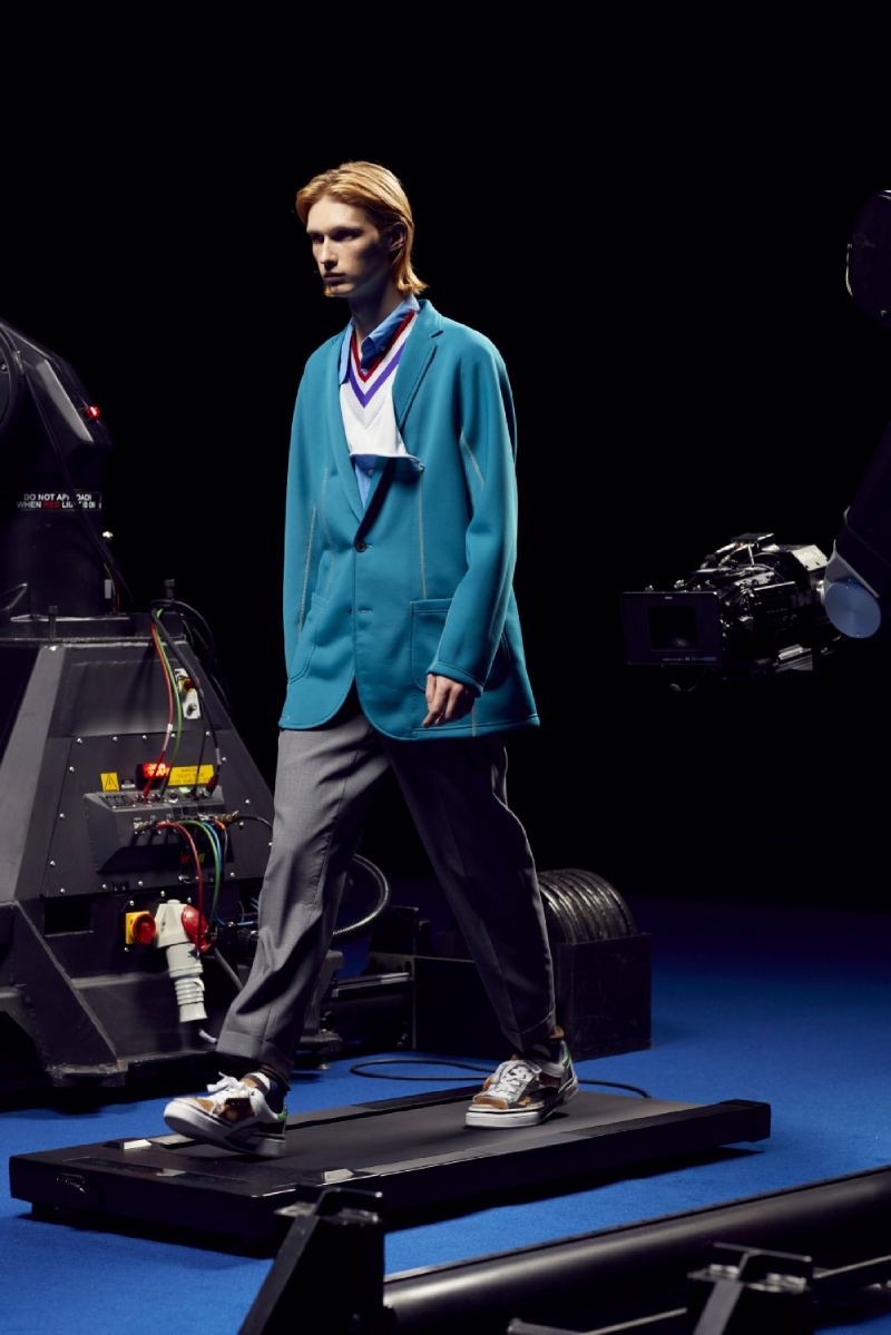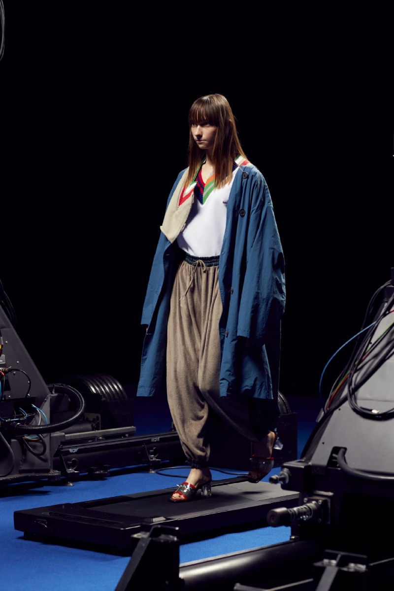 La colección de Kolor SS22 ha sido estrenada bajo un halo de futurismo tecnológico que nos recuerda a una de las presentaciones más emblemáticas del mismísimo Alexander McQueen. Posicionando a los modelos en una cinta de correr y recogiendo planos circulares desde diferentes perspectivas, las cámaras recogen todos y cada uno de los detalles de este lanzamiento tan exclusivo.