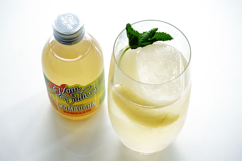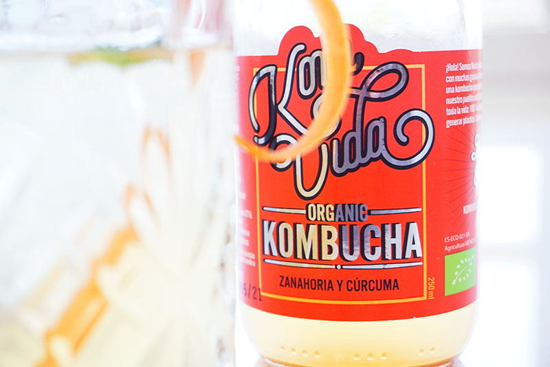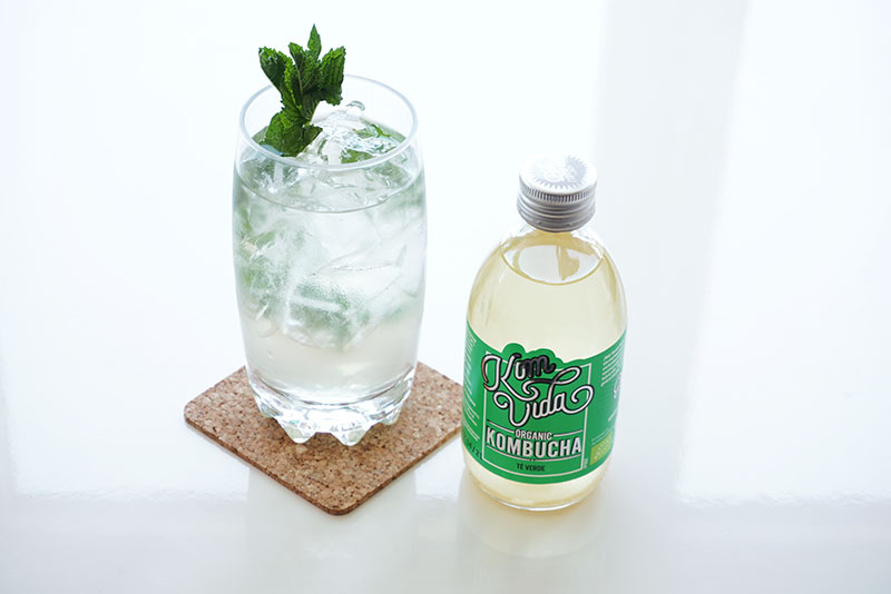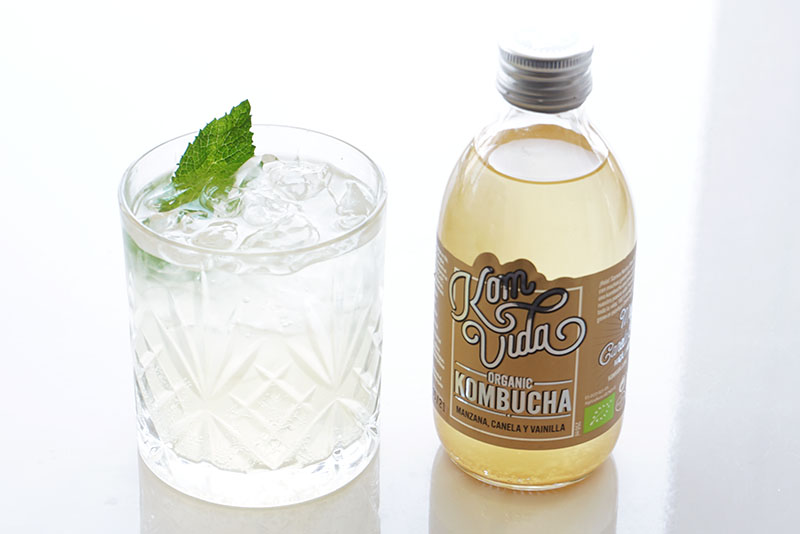 Kombucha artesanal elaborada a partir de agua, té verde, azúcar de caña y scoby, esa cosa que pone en simbiosis a bacterias y a levaduras para que sigan haciendo su efecto en nuestro interior. Komvida como alternativa a los refrescos industriales. También en coctelería.