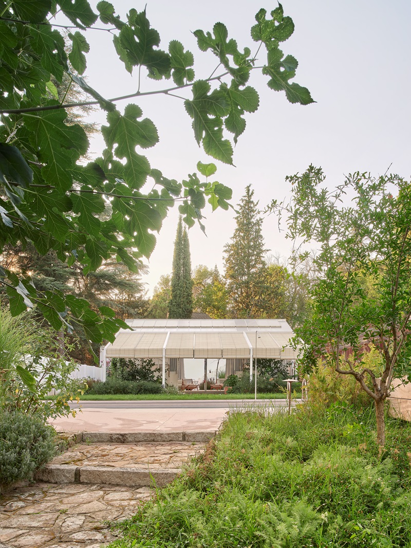 Bautizado como Kresta Garden House, la estructura customizada del invernadero agrícola prefabricado es la gran protagonista de la frondosa parcela de 1000 m2 de Casa Montesa. Desafiando su uso tradicional, el diseño apuesta por crear no solo un espacio para las plantas y labores del jardín, sino un pabellón multifuncional que se convierta en el mejor complemento de una pequeña casa de fin de semana. Y es que este invernadero ha sido ideado para que en su interior puedan tener cabida distintas actividades, como la práctica del ejercicio, las tareas de la oficina o los trabajos del taller. Además, de ser un rincón perfecto para relajarse o un cuarto de lo más original para invitar a los amigos.