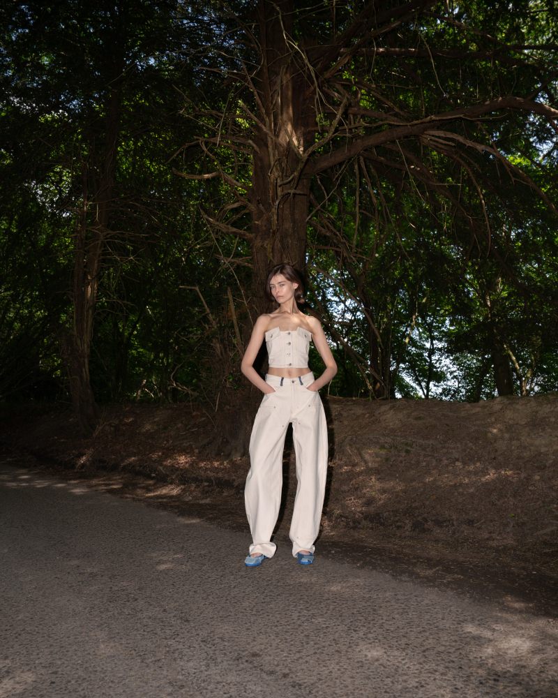 La nueva colección de Ksenia Schnaider Pre-Spring 26 es mucho menos girly y naif de lo que parece ser. De hecho, es un ejercicio perfectamente ejecutado de high street escondido bajo estereotipos y arquetipos clásicos. La reimaginación y deconstrucción del denim es protagonista.