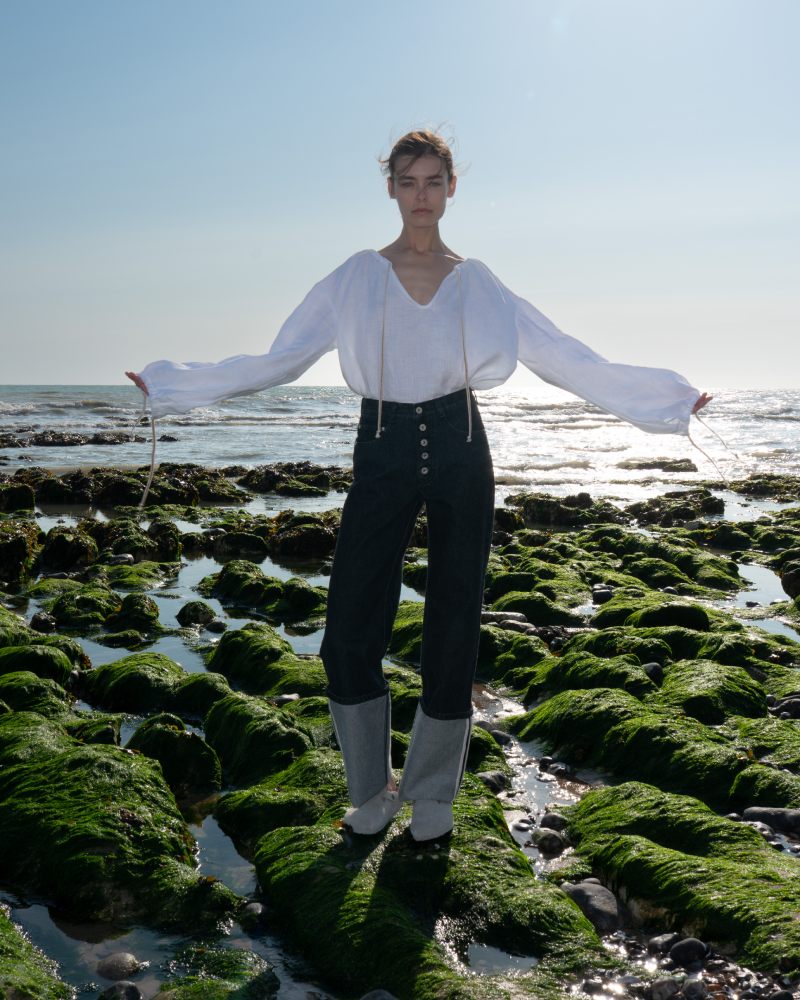Ksenia Schnaider no es vuestra típica marca de womenswear conteporáneo. Aquí, prima un lenguaje de upcycling y reinvención de construcciones que convierte los staples de un armario clásico en piezas que rozan el avant-garde. Y, como sello de identidad, estos mantras reformistas e iconoclastas se plasman predominantemente sobre la tela vaquera; cargada de posibilidades.