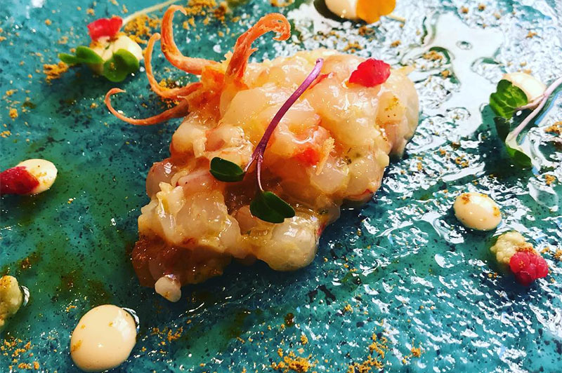Foto superior: el tartar de gamba roja del restaurante Kuc