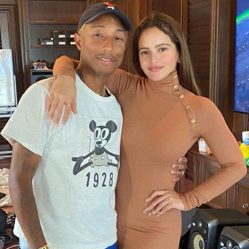 Arriba, Rosalía con Pharrell Williams, foto del perfil de Rosalía en Instagram con fecha 7 de diciembre 2020