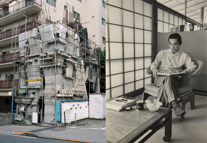 Imagen superior izquierda: Keisuke Oka. Arimaston Building, 2005- © Ryudai Takano. Courtesy of Yumiko Chiba Associates, Zeit-Foto Salon. Derecha: Kenzo Tange en su casa construida en 1953 Cortesía de Michiko Uchida