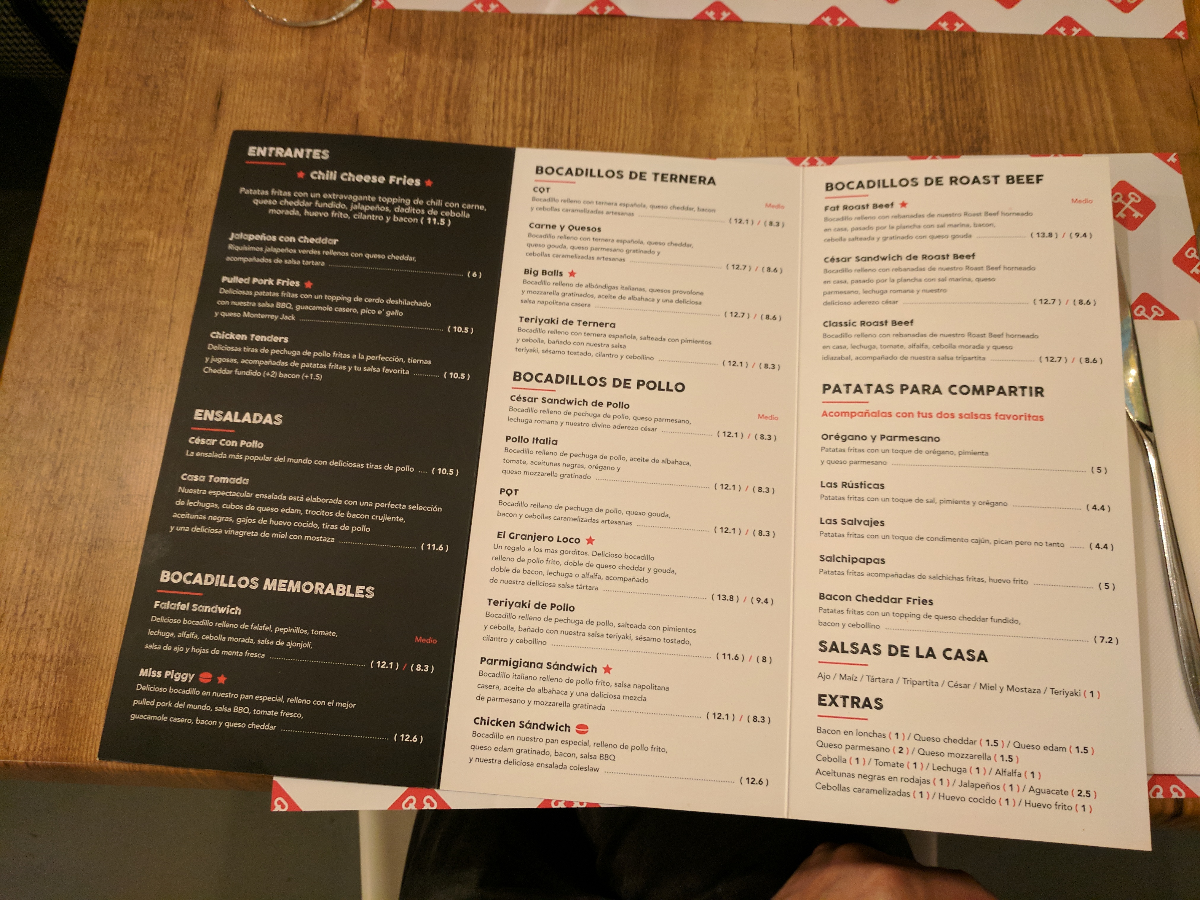 “Viajamos a Norteamérica en los bocadillos CQT, Classic Roastbeef o Fat RoastBeef o en uno de sus platos estrella: Chili Cheese Fries (una sabrosa y contundente combinación de patatas fritas, chili con carne, jalapeños, queso cheddar, bacón crujiente, cilantro y un huevo en el topping). Los sabores asiáticos los encontramos en los poderosos bocadillos de ternera o pollo con salsa teriyaki.