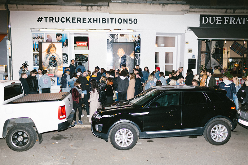 ——————————Arriba: Entrada a la exposición #TruckerExhibition50 de Berlín donde se exponían customizaciones de la Trucker Type III de Levi’s® realizadas por colectivos creativos de toda Europa
