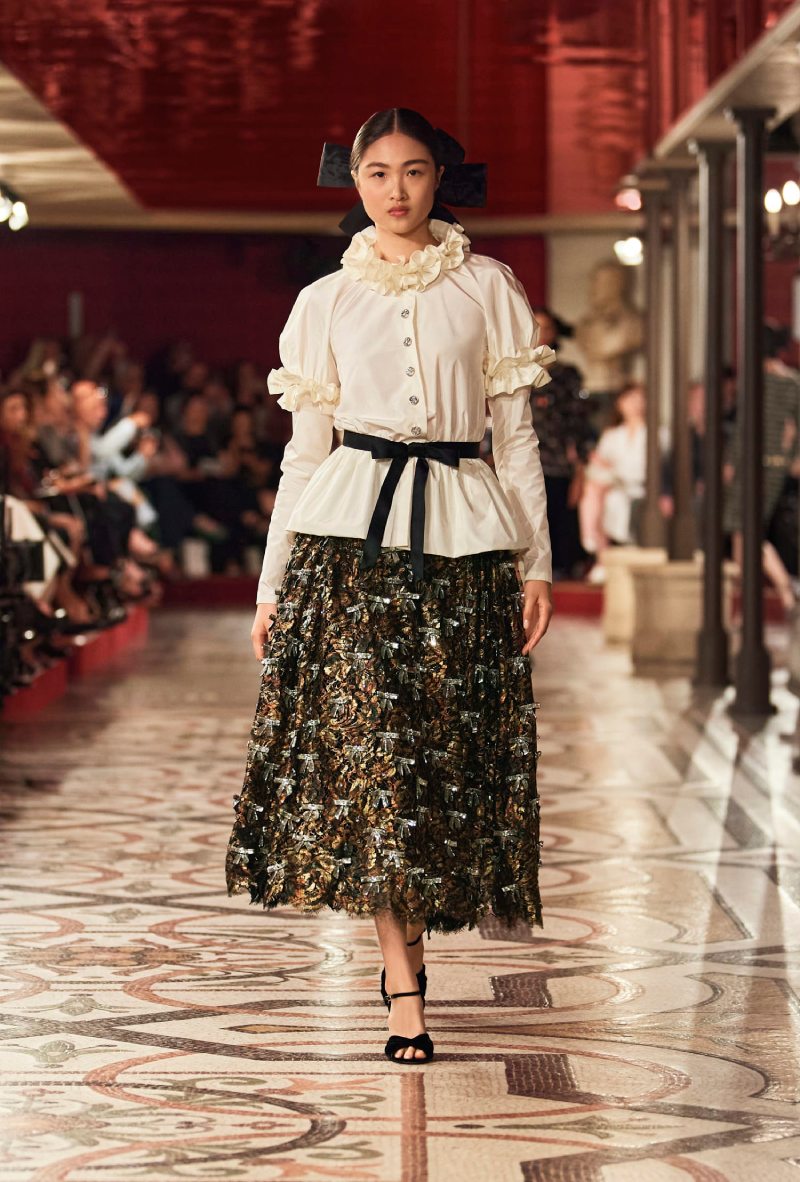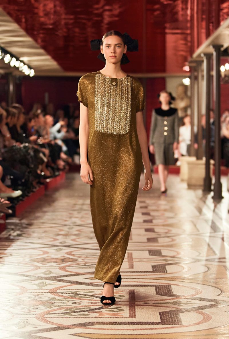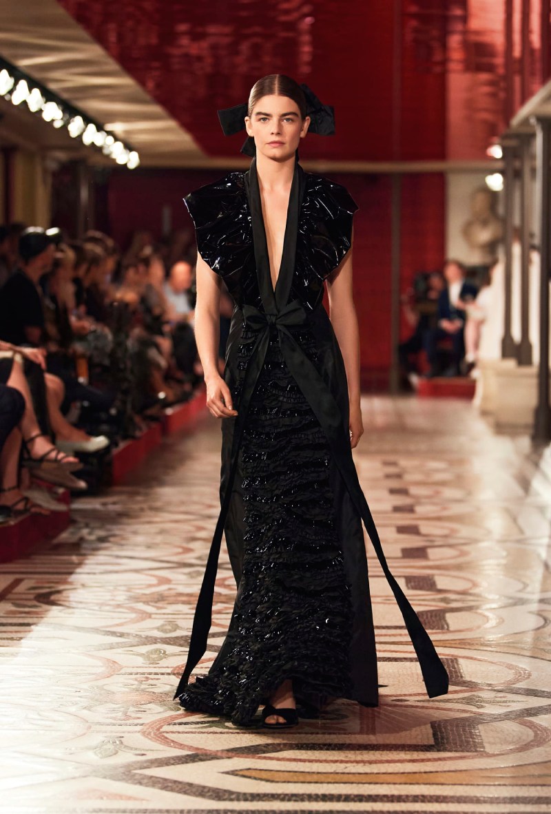 Coco Chanel hizo el vestuario para Le Train Bleu (1924) y Apollon Musagète (1928) y ahora, 100 años después, el equipo de diseño de la maison vuelve a unir a la casa con la danza. Y claro, introducen referencias de estos diseños a la mezcla. Esta nueva colección de Alta Costura se acerca muchísimo a la teatralidad y el dramatismo que vemos en escenario. Sin embargo, el repertorio de looks no se ve histriónico ni sobrecargado, sino todo lo contrario. Al típico chic de Chanel se le suma un componente de volumen, silueta y material que refresca la mirada, sin cansar.