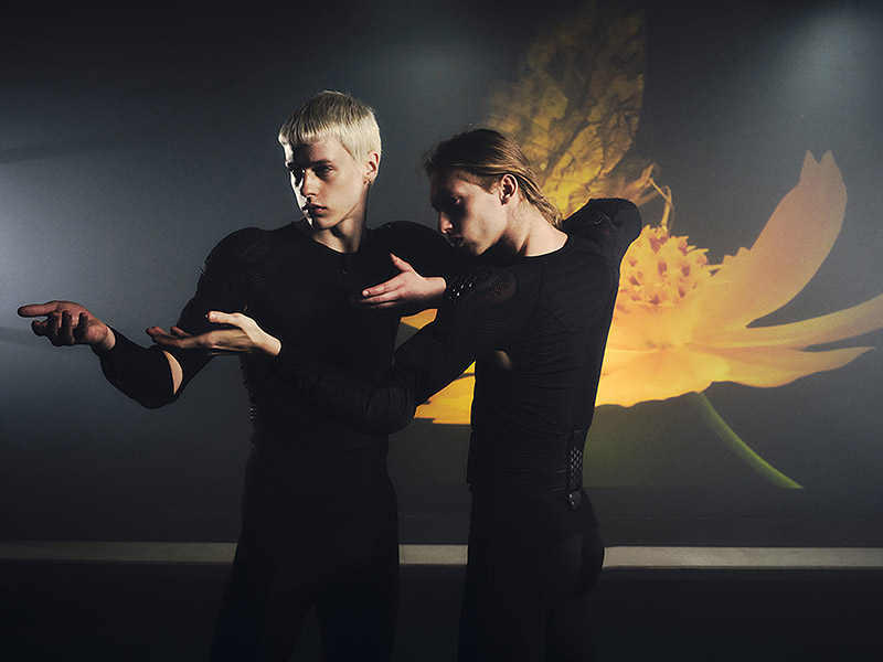 Kor’sia: Su idea del simulacro —representaciones que ya no remiten a ningún original, copias de copias— fue un punto de partida. No queríamos ilustrarla, sino dejarnos atravesar por ella. En escena, el cuerpo se vuelve un dispositivo crítico: una presencia viva dentro de un entorno simulado. Nos interesaba explorar cómo puede resistir —o disolverse— ante imágenes que brillan más que lo real. Cuerpos que se duplican, que se distorsionan frente a paisajes digitales o mentales, generando tensión entre lo auténtico y lo fabricado.