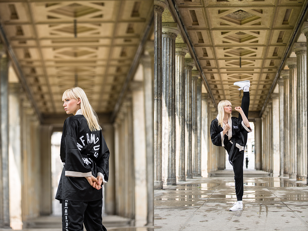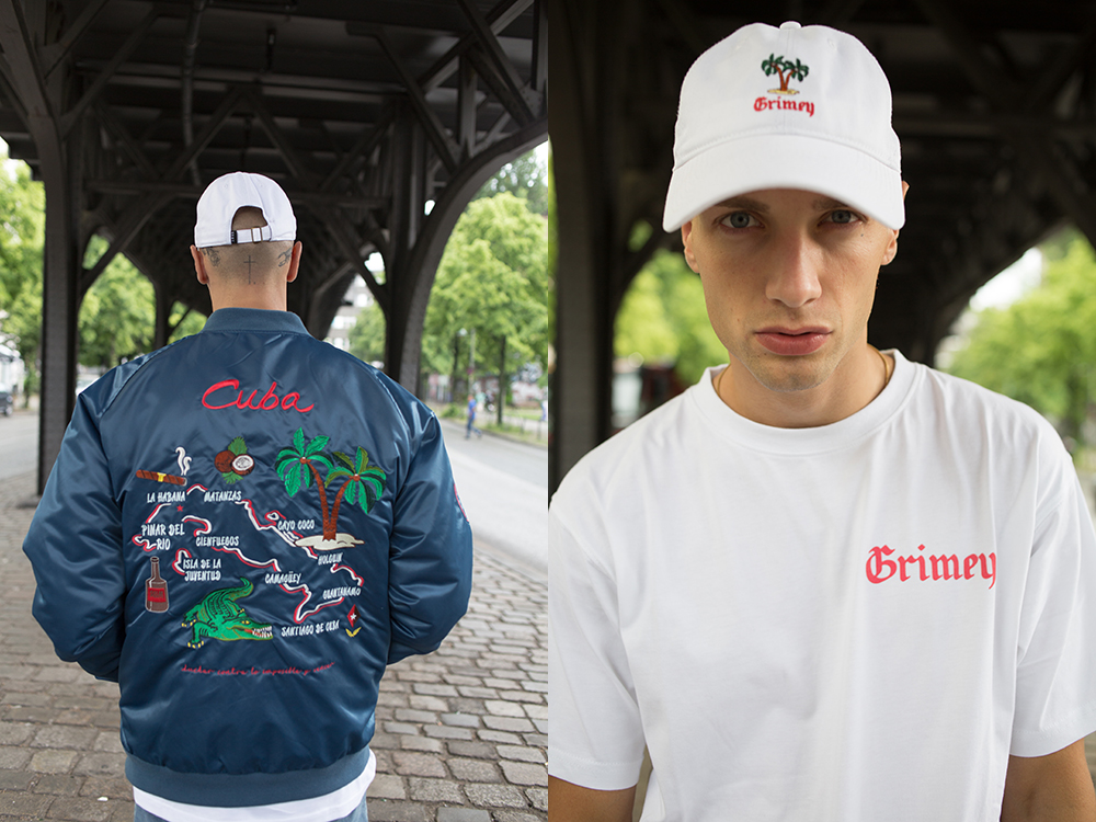 Sus fundadores, Pablo Moreno y Rafael Anguis, comparten de diversas formas sus inquietudes estéticas, musicales y hasta políticas con el público de Grimey. Para empezar, tenemos sus colecciones. La de este otoño invierno está dividida en 11 líneas, donde a través de una amplio número de prendas rinden diversos homenajes: desde a Lucy Parsons, la mítica activista norteamericana que luchó a favor de los derechos de los marginados durante el siglo XIX y XX, a los 90 más radicales, pasando por referencias al punk, la escena gótica, el streetball, el boxing… e incluso Cuba, un país muy querido por Grimey. De hecho, dispararon allí la campaña de su anterior colección. Las calles de Nueva York y Berlín han sido los escenarios elegidos para esta temporada.