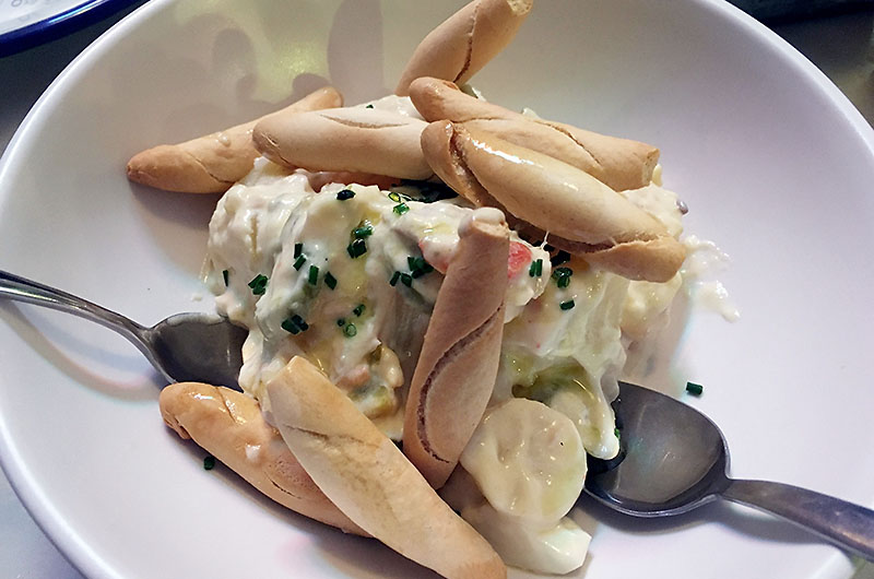 Foto superior: ensaladilla rusa como nos gusta a nosotros con escabeche casero de bonito fresco de La Elisa