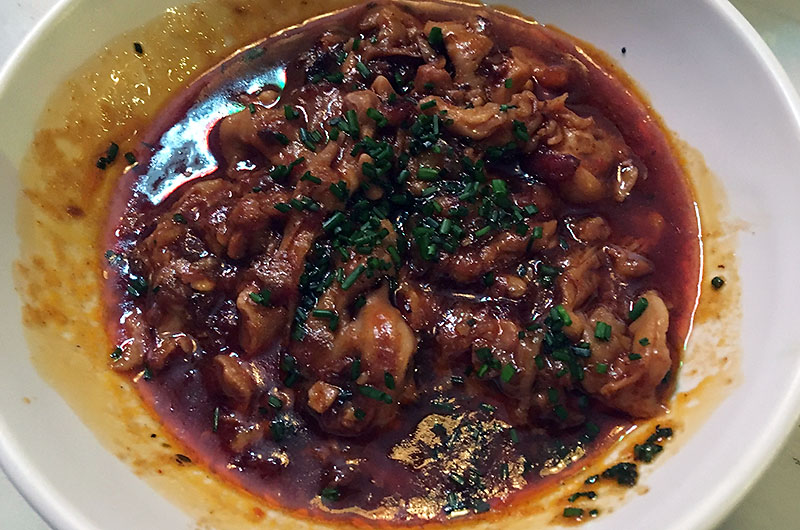 Foto superior: plato de manitas de cordero a la madrileña de La Elisa
